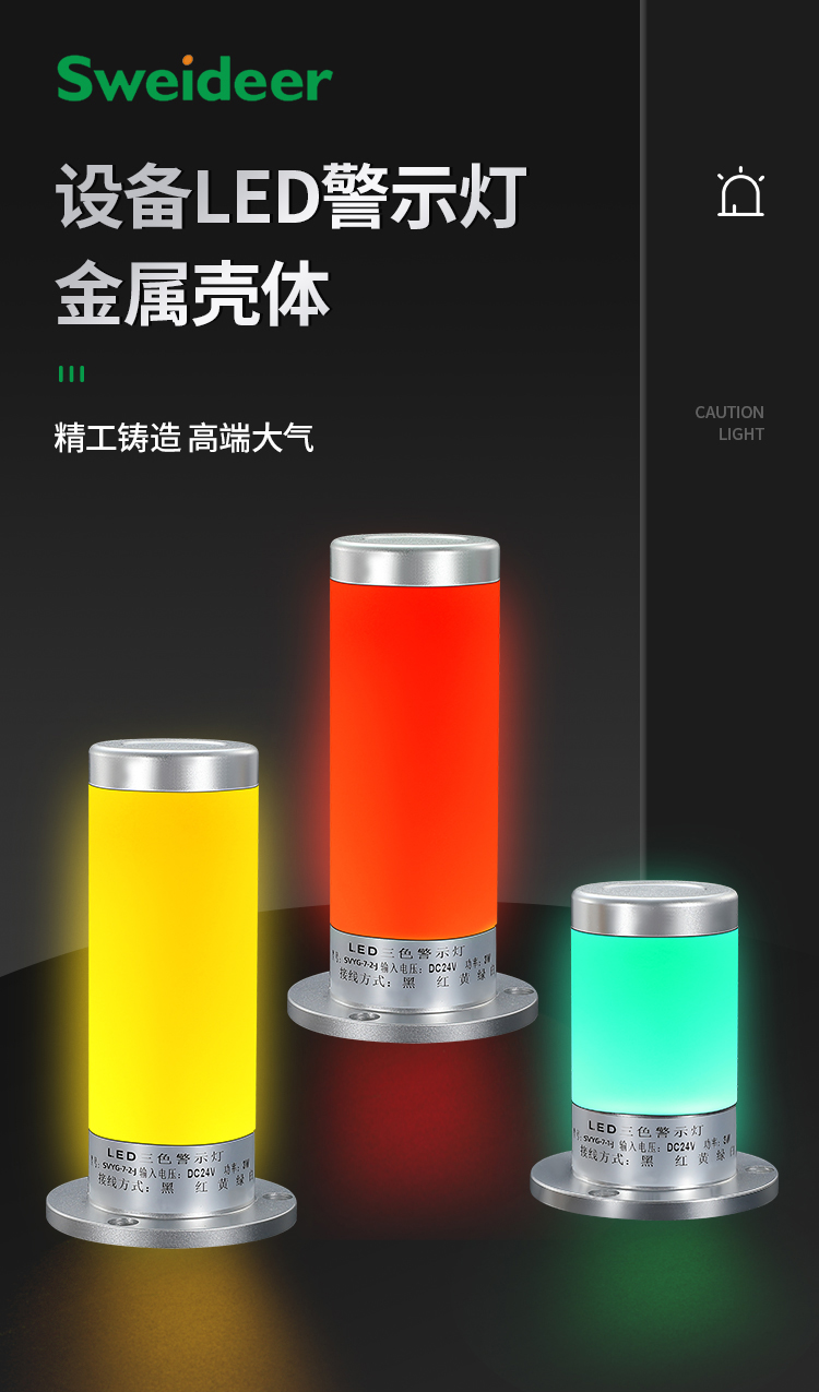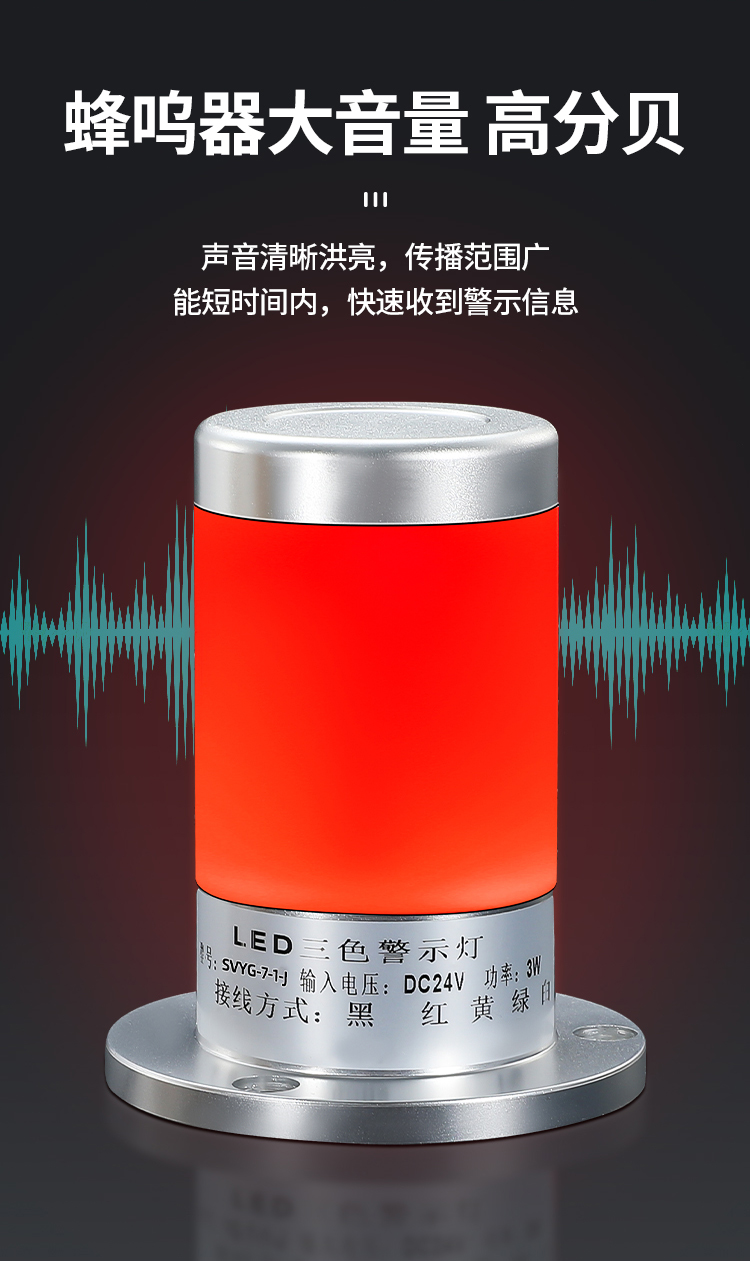 索维 金属警示灯小型LED三色声光报警灯 闪烁信号灯设备指示灯24V