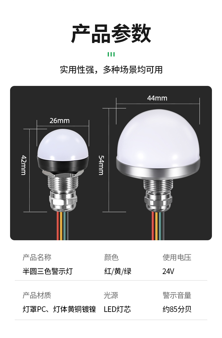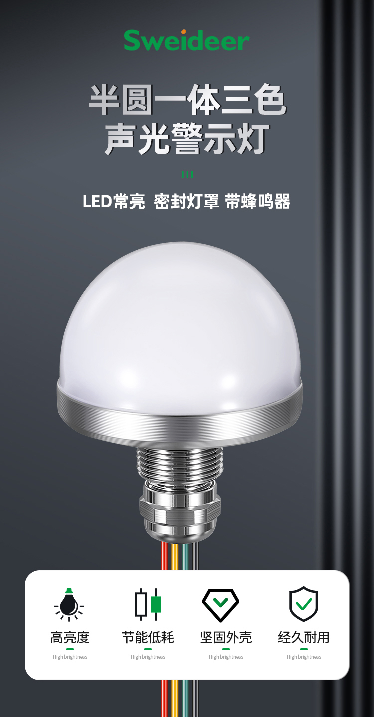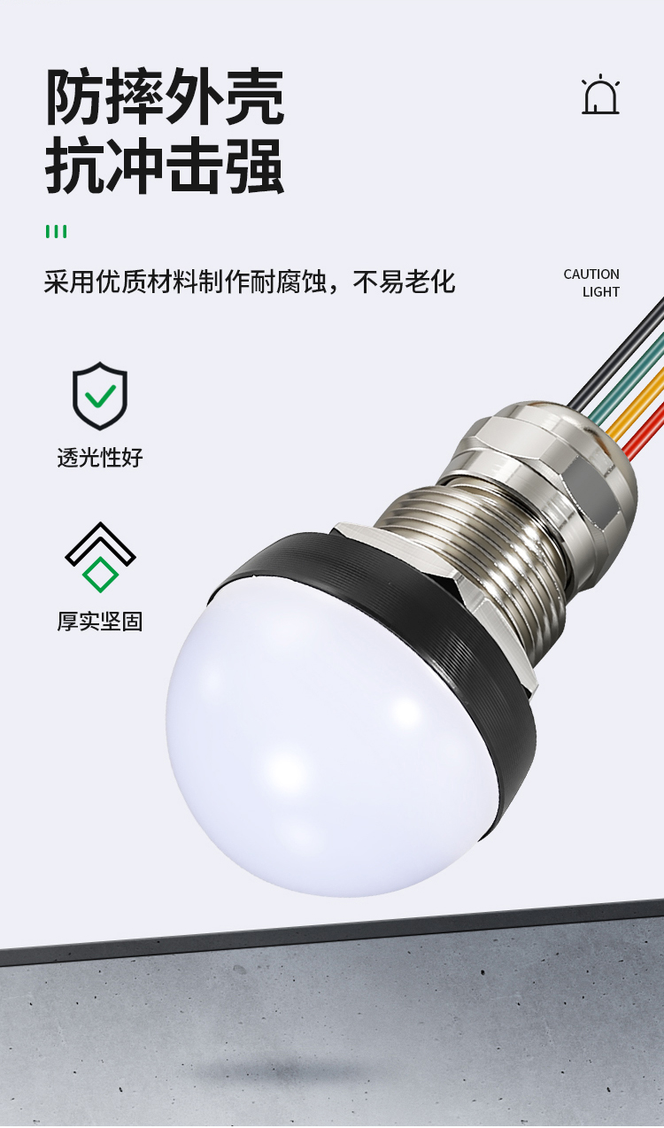 迷你小型三色一体警示灯半球形 LED红黄绿防水报警灯设备故障指示