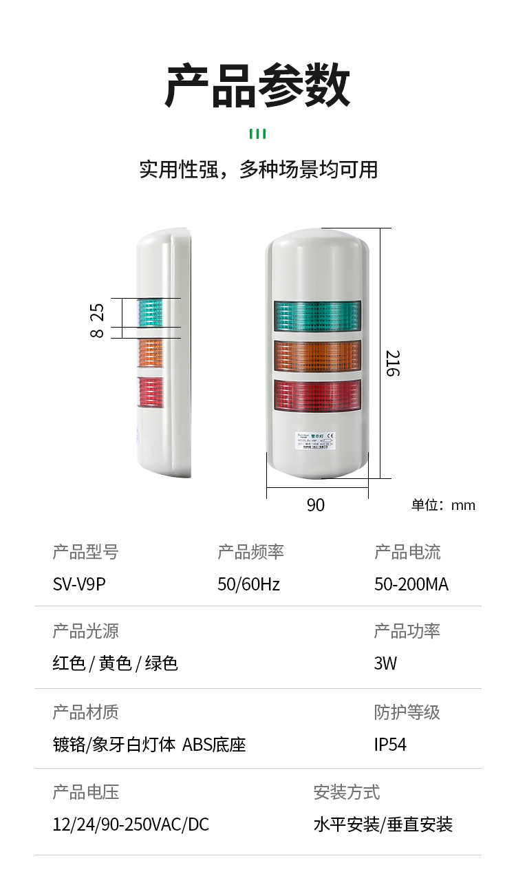 SV-V9P挂壁式三色报警灯警示灯24V 220V