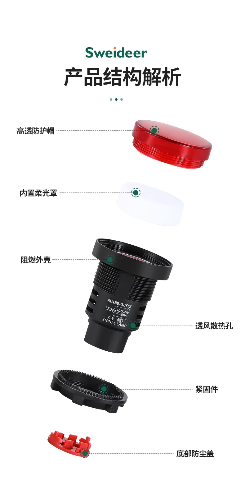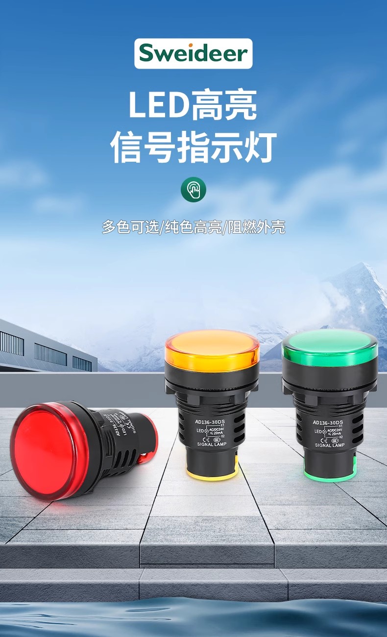 索维AD136-30D电源指示灯30MM开孔LED信号灯12V/24V