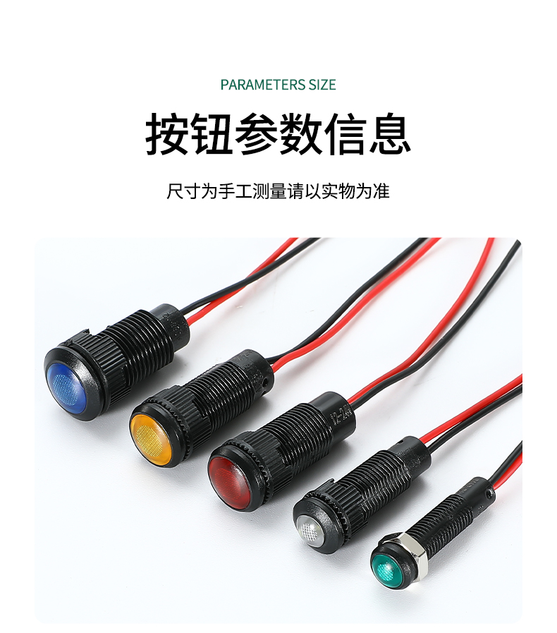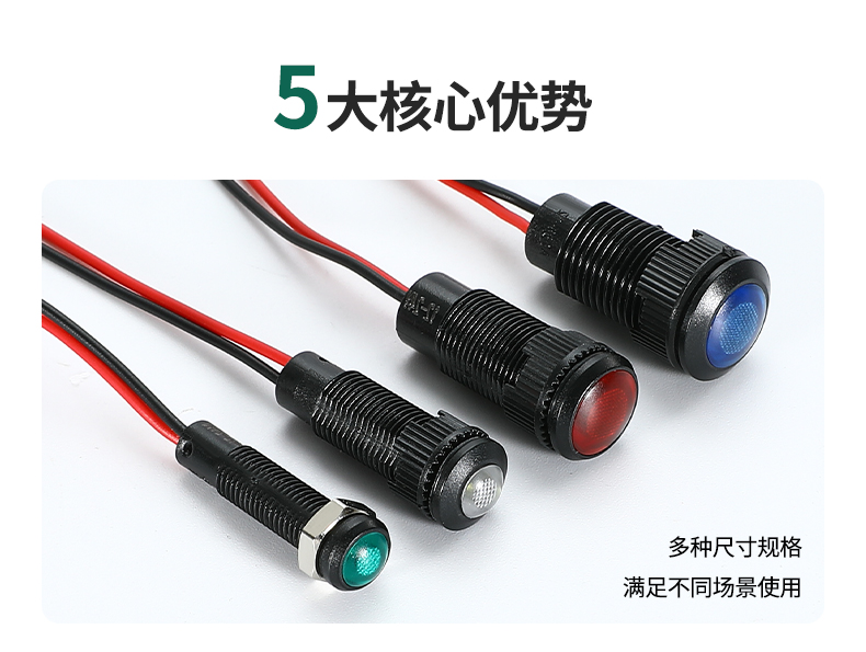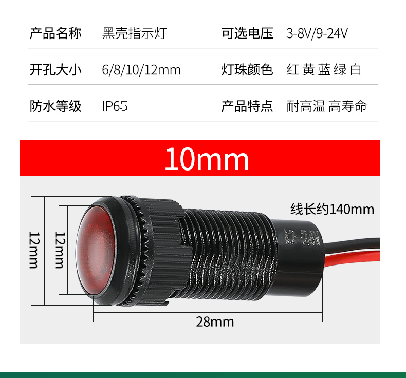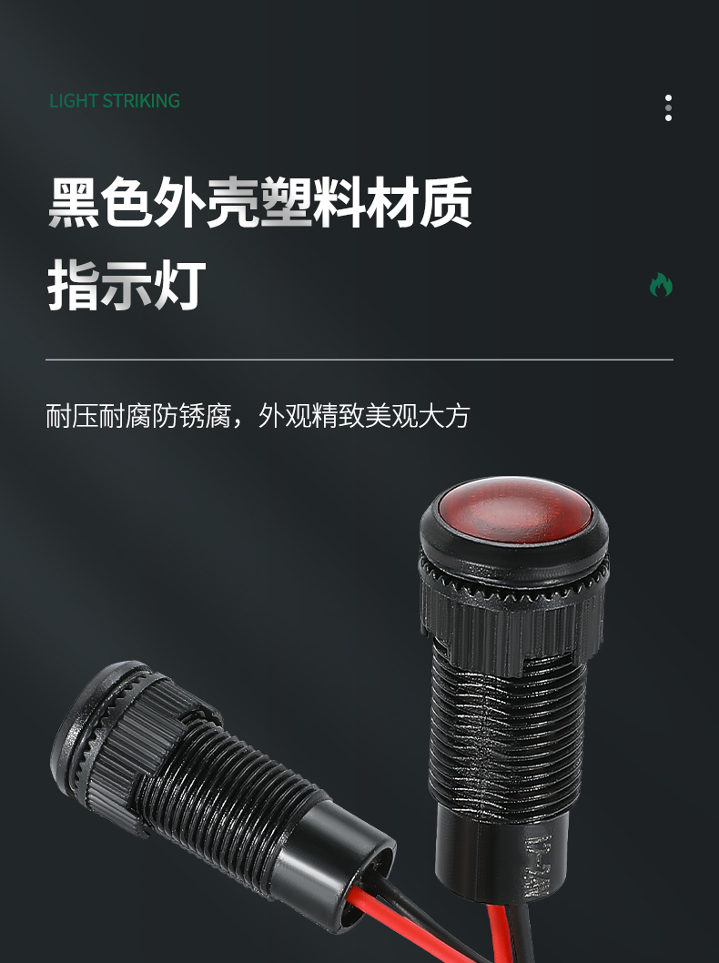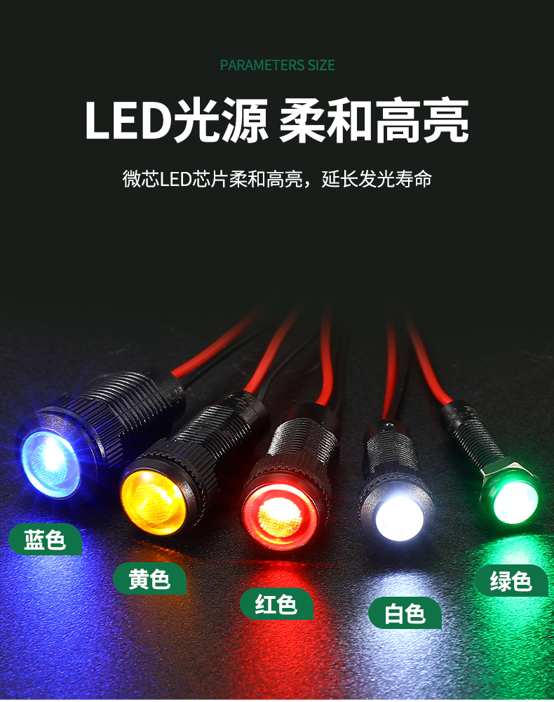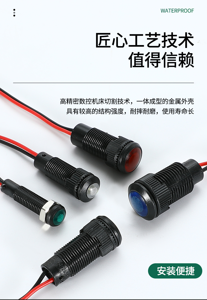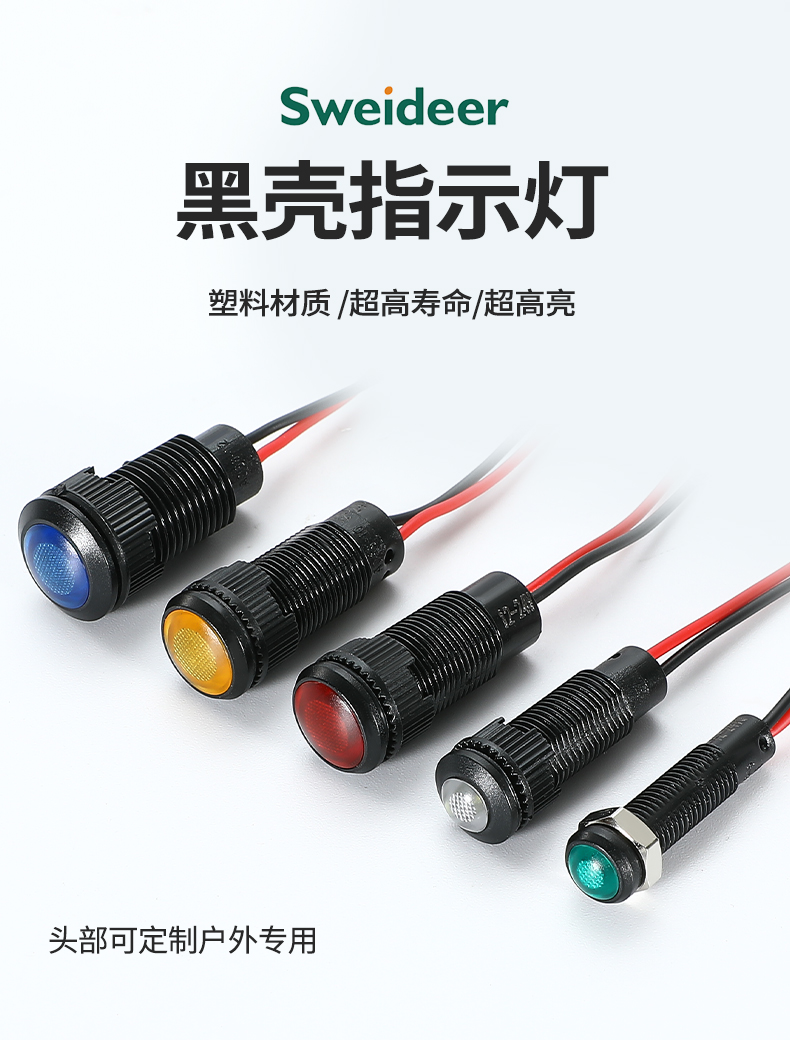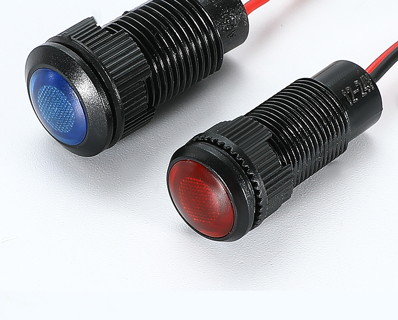 6/8/10/12/16/19/22MM氧化黑塑料指示灯带线LED防水信号灯12V 24V