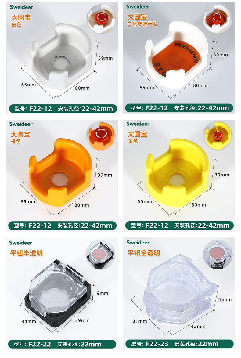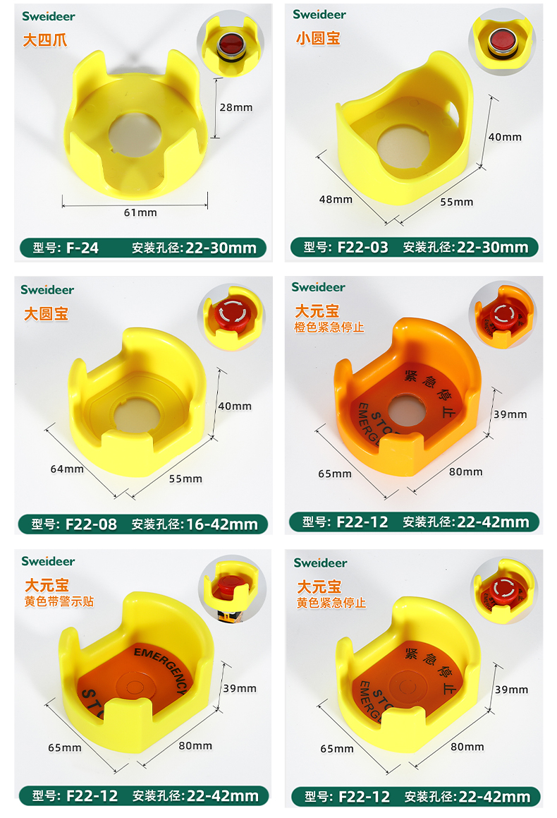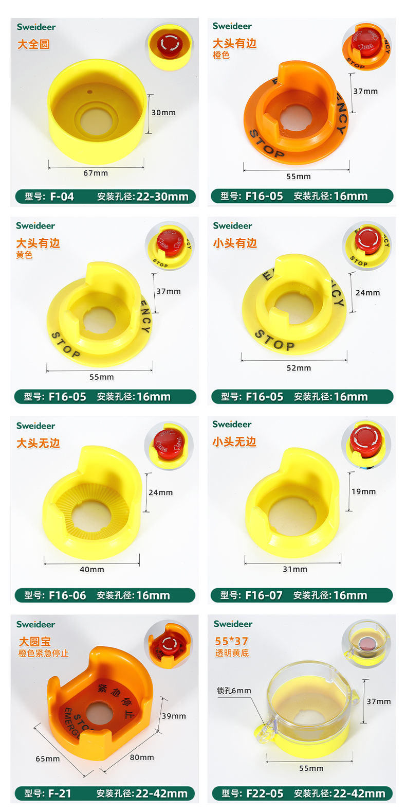 1622/25/30mm急停按钮开关防水帽保护罩误操作标识牌警告圈面板塞