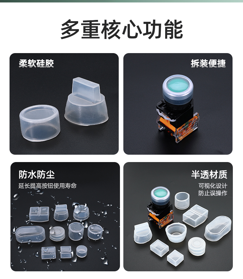 按钮防水帽橡皮防尘套22mm开关保护罩16圆形双位钮透明密封硅胶套