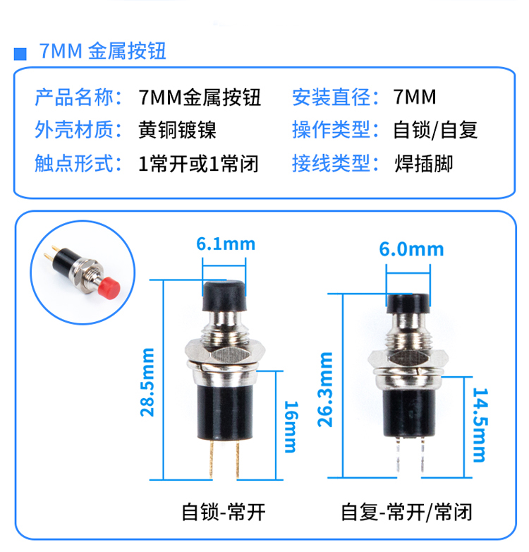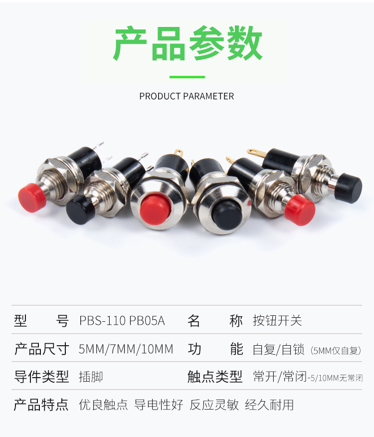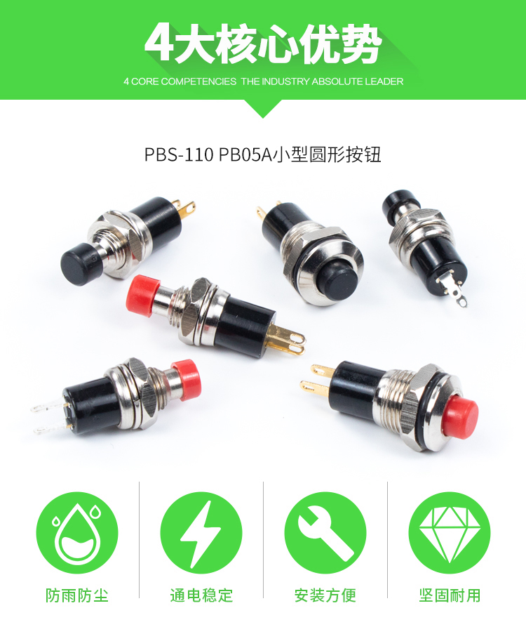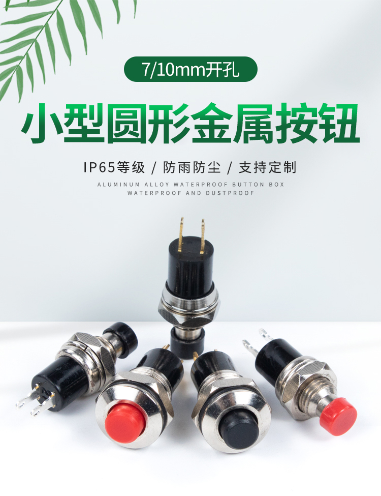 索维 5/7/10mm小型圆形金属按钮PBS-110 PB05A自复位自锁点动开关