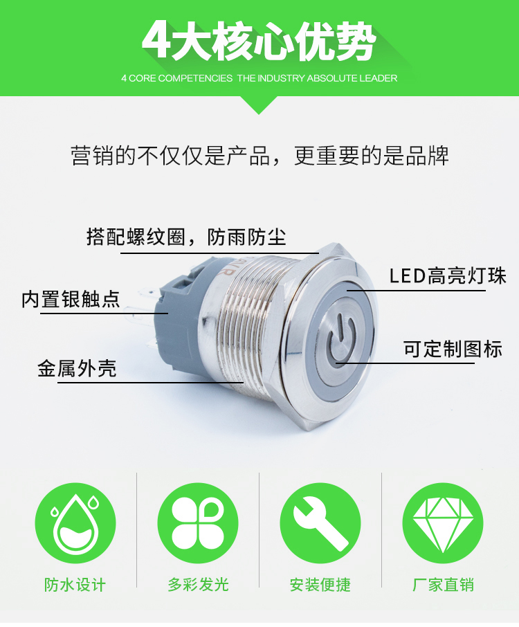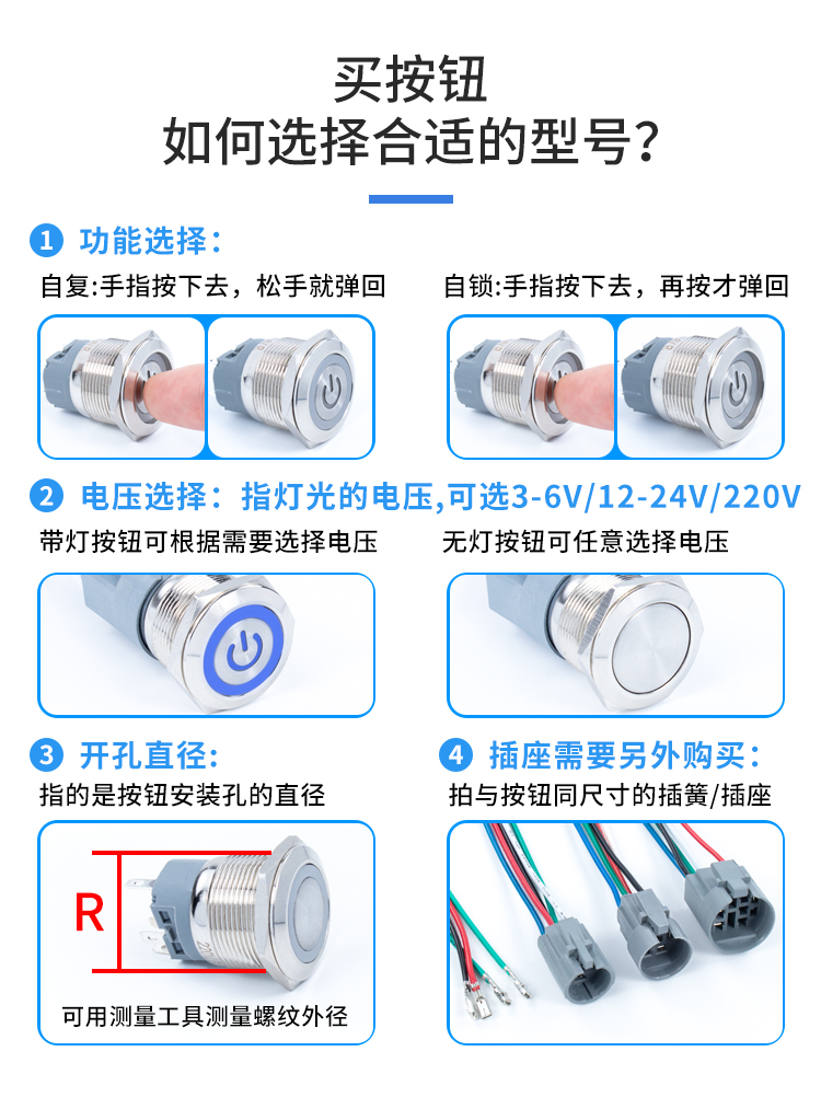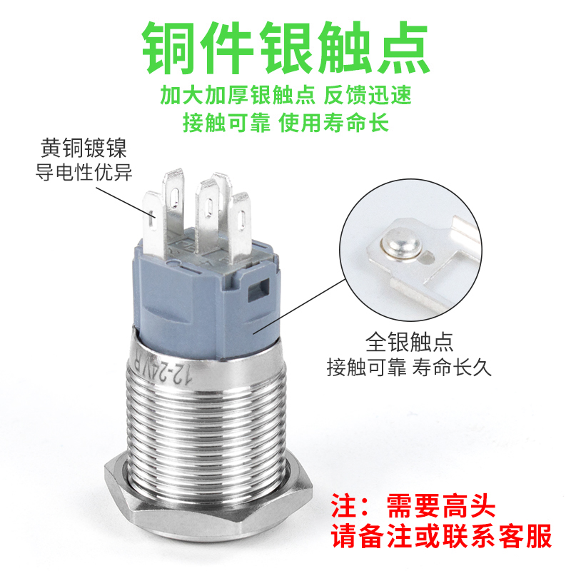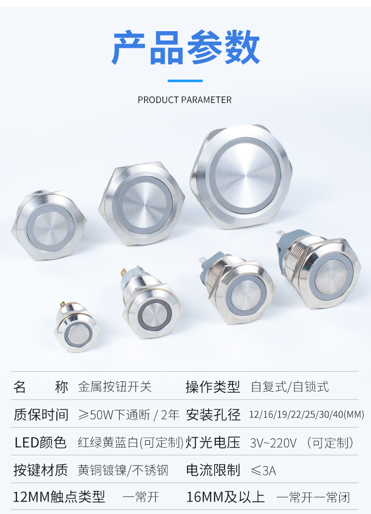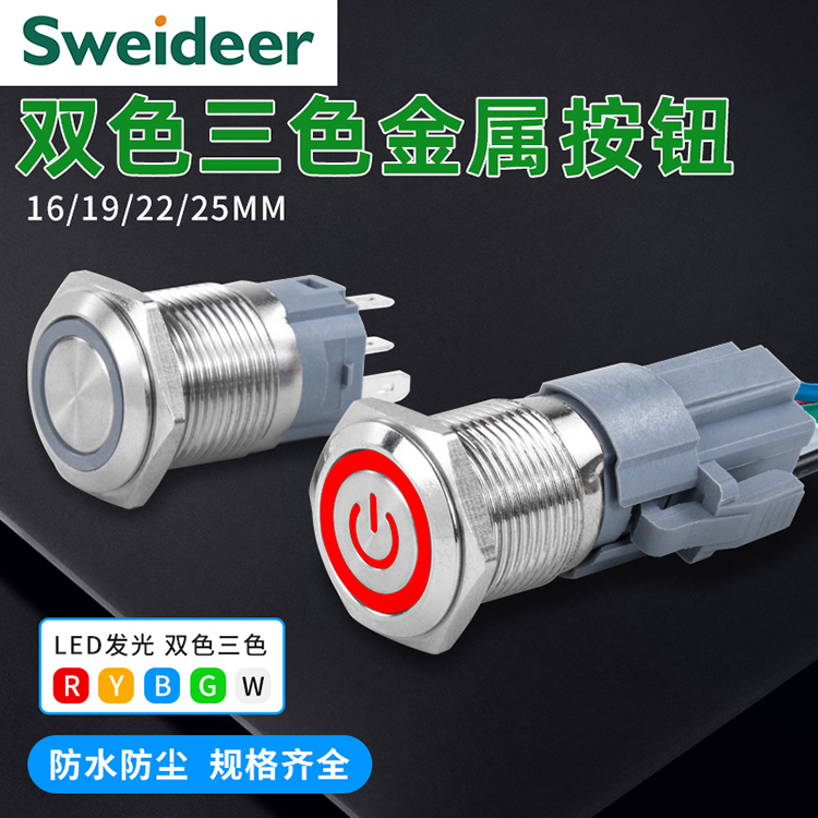 索维161922MM金属按钮开关 带灯双色三色灯复位自锁 门铃电源按键