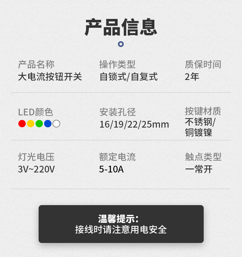 金属按钮开关16/19/22/25MM自复自锁15A喇叭车大电流功率防水按钮