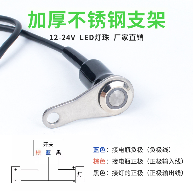 电动车射灯开关 LED灯电车金属按钮防水双闪带灯喇叭通用断电控制