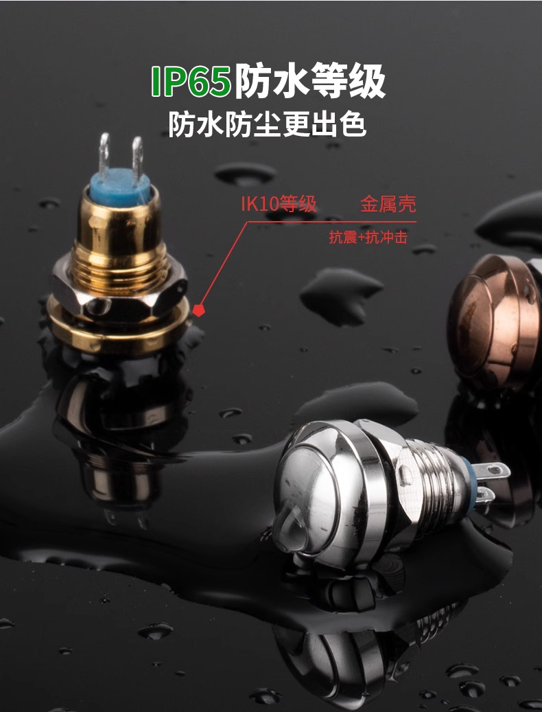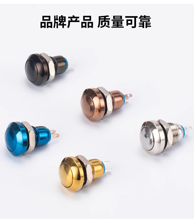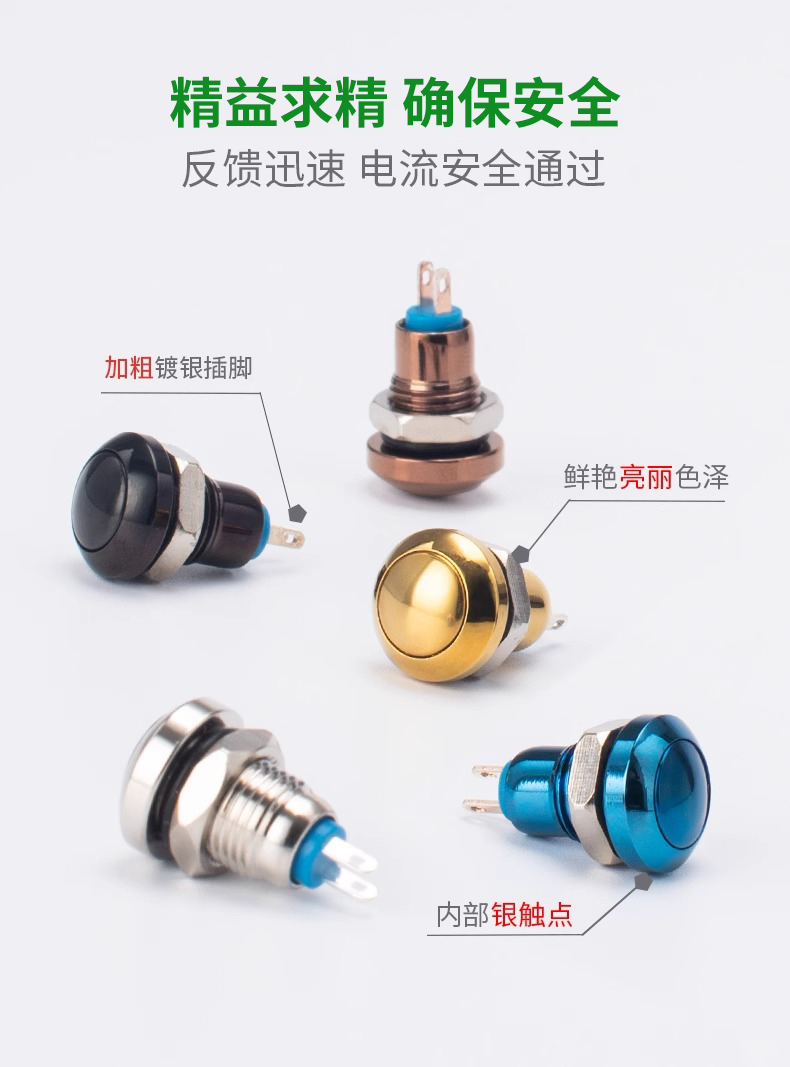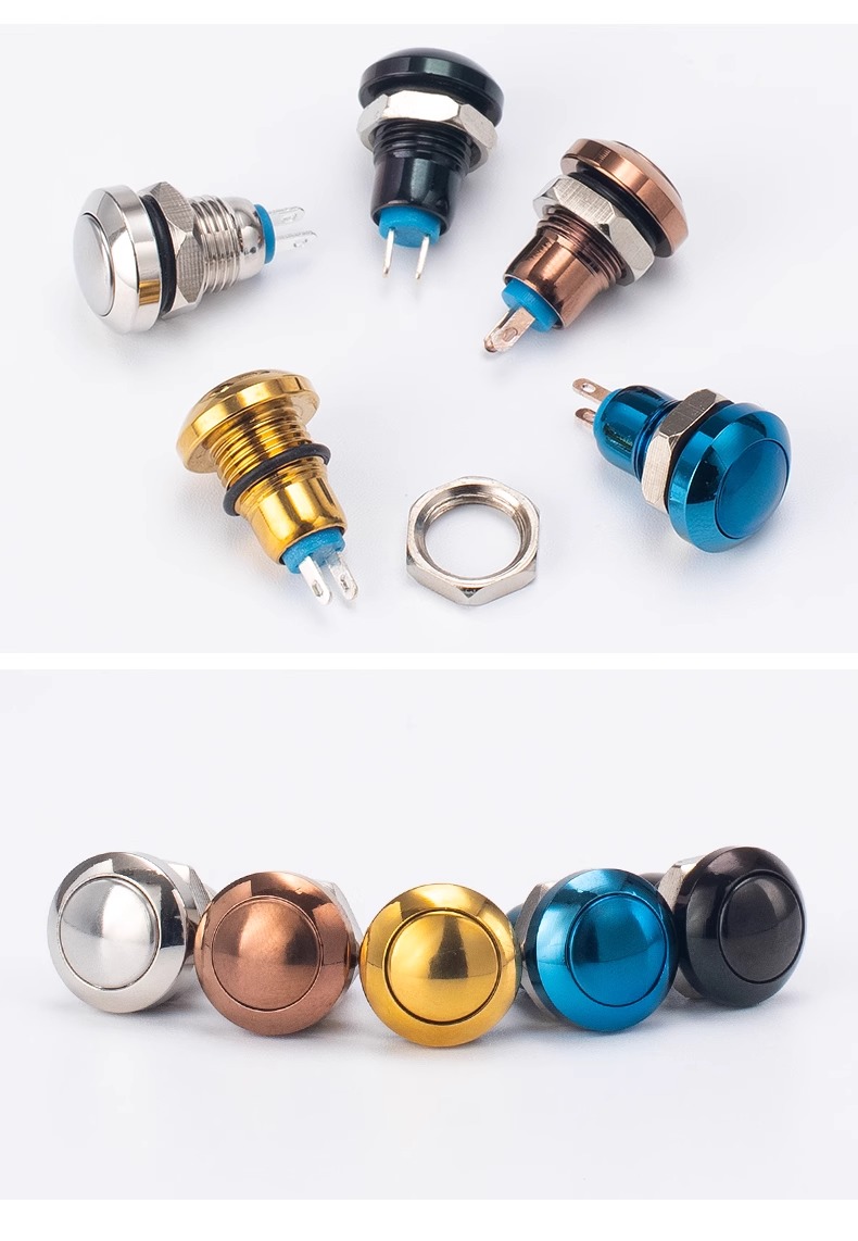 8/10MM金属按钮开关自复点动自锁位彩色铝氧化黑红黄小型圆形迷你