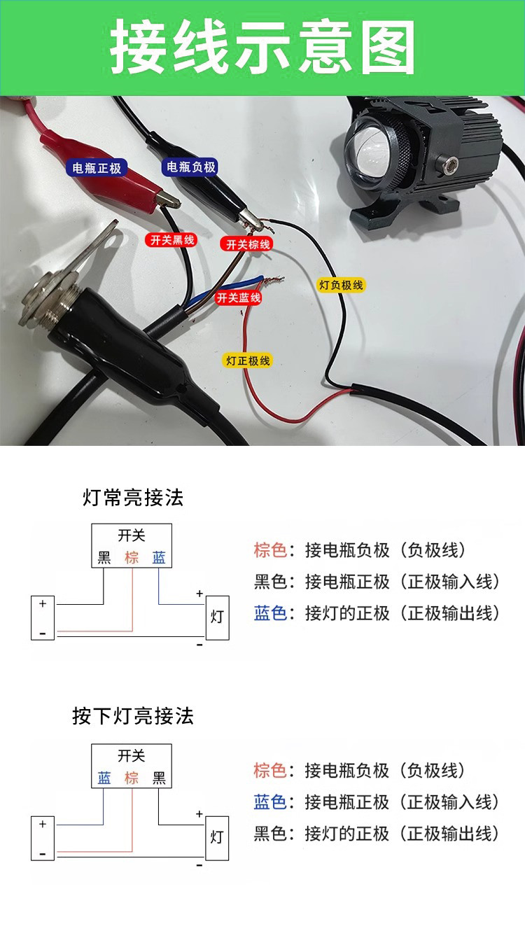 摩托车电动车手把改装金属按钮开关 LED大灯防水双闪带灯喇叭通用