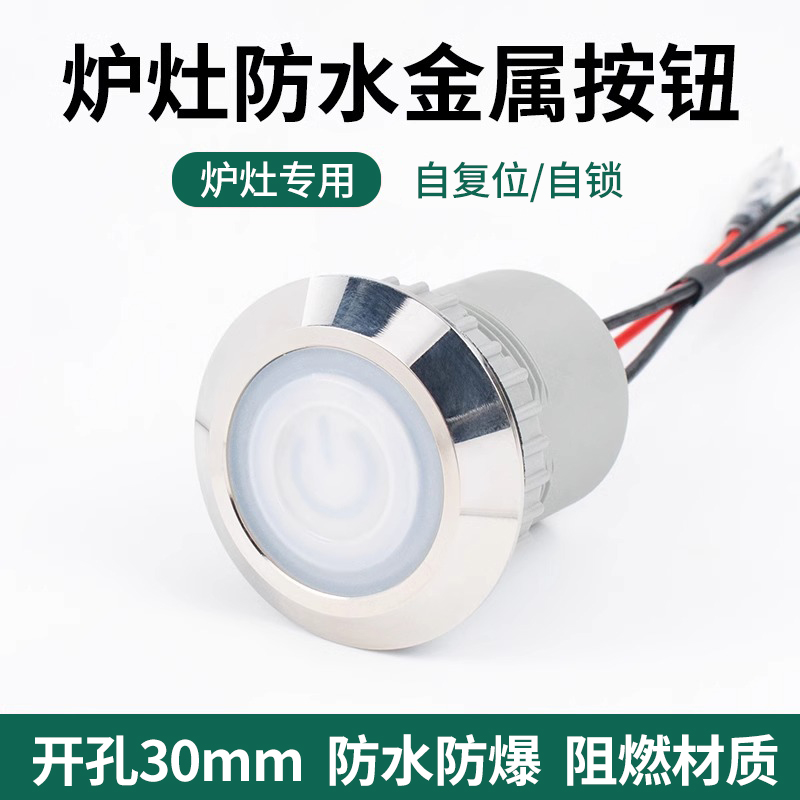 22 30mm炉灶防水按钮电源金属自锁灶台风机商用猛火灶点火开关