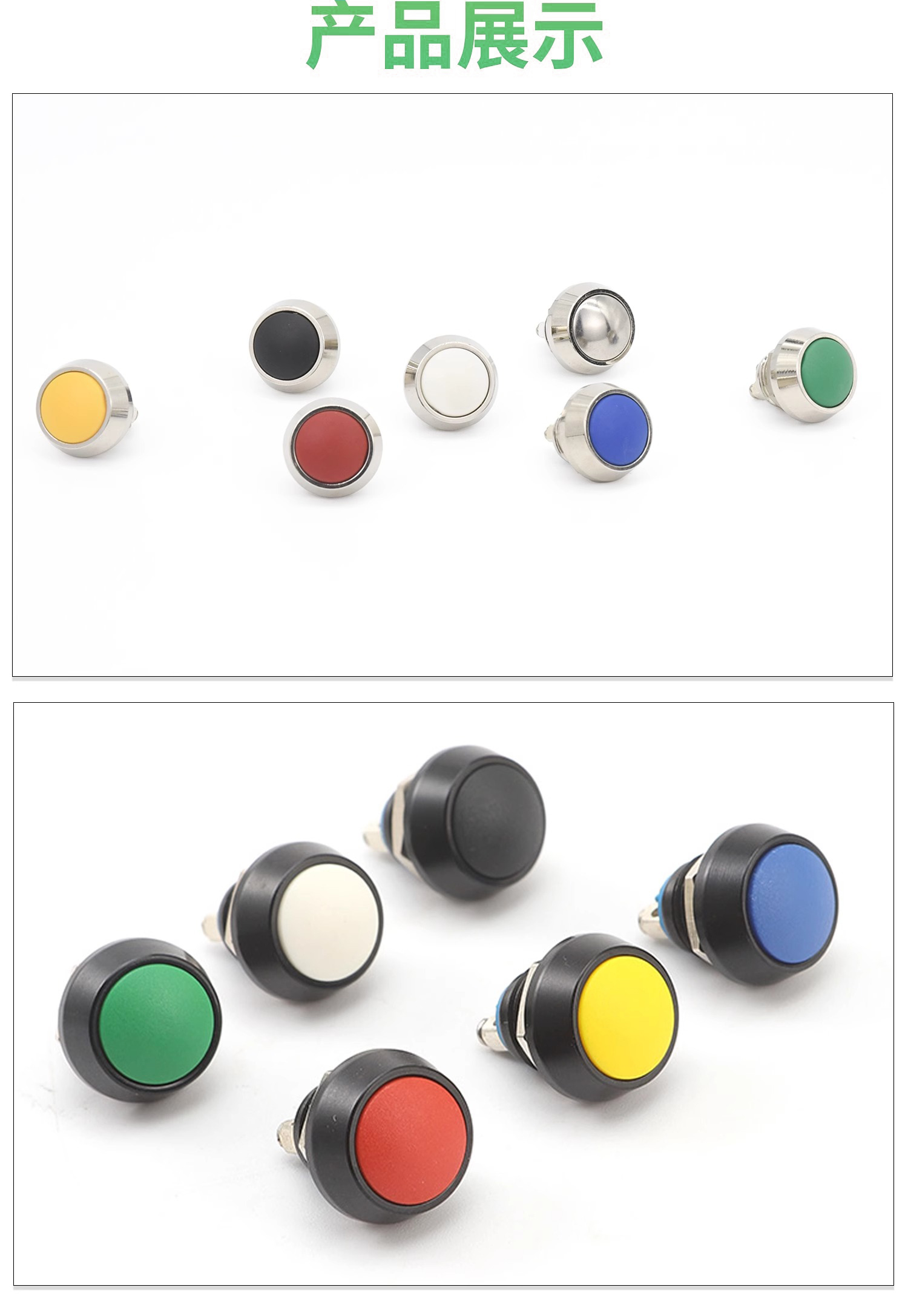 12mm金属自复按钮彩色大头球面点动电源启动螺丝脚银触点按键开关