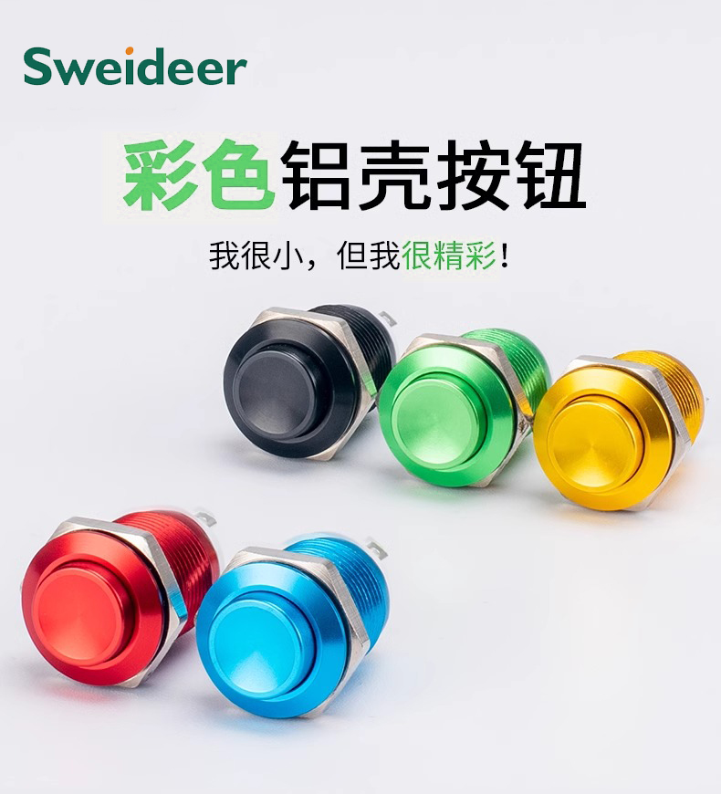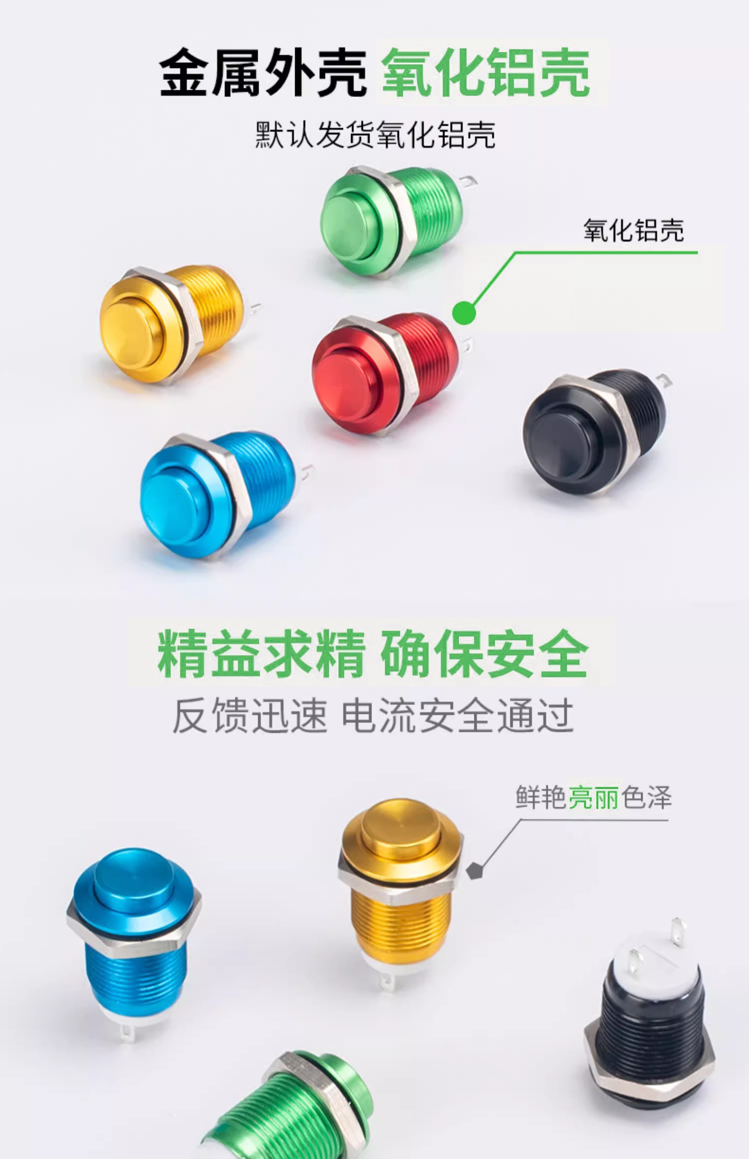 12MM金属按钮开关自复点动焊接彩色铝氧化黑红黄绿蓝小型高头迷你
