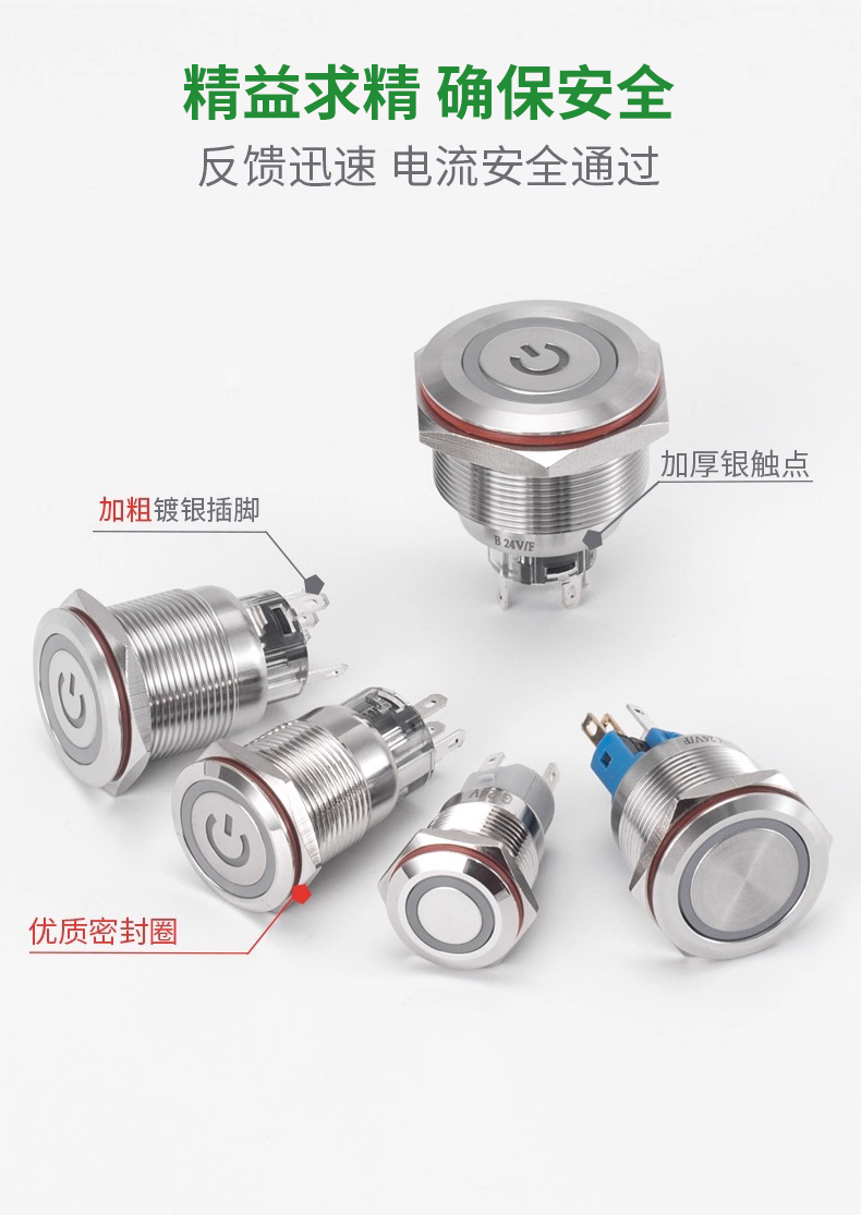 金属按钮开关钮子圆形按压式带灯自复位自锁电源A4微型防水按键B4