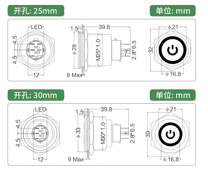 分类:LA155-G系列金属按钮开关