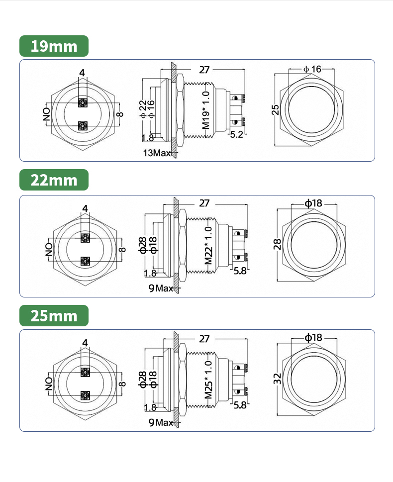 金属按钮开关螺丝脚银点长款按压式微型点动式回弹自复位防水小型