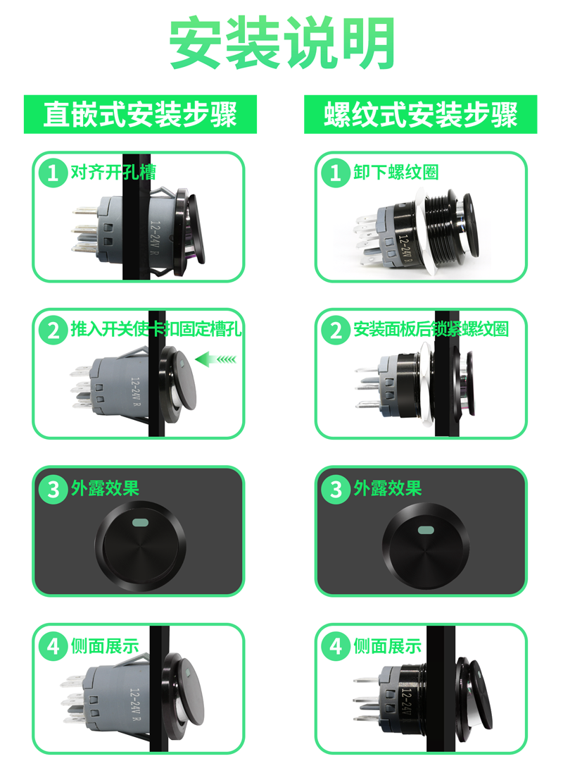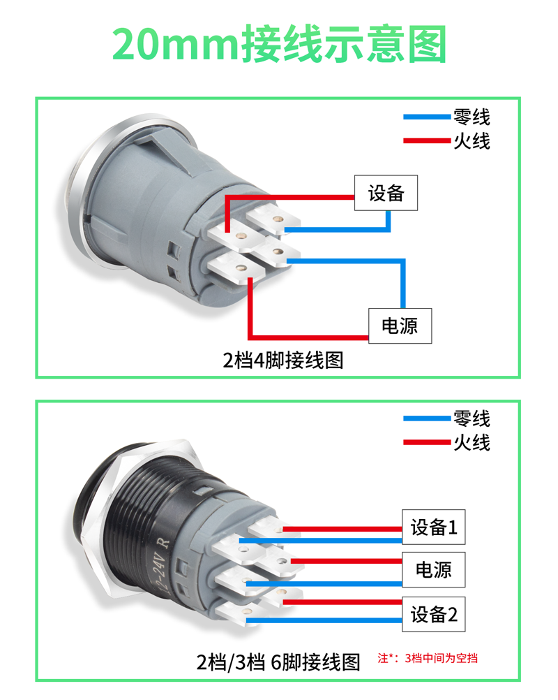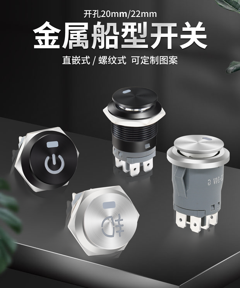 20/22mm 圆形金属船型开关二档三档大电流翘板开关电源按钮Ith20A