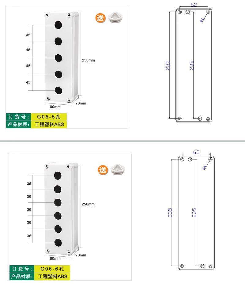12345孔防水按钮开关控制盒按钮盒急停防尘防水按钮加厚黄灰两色