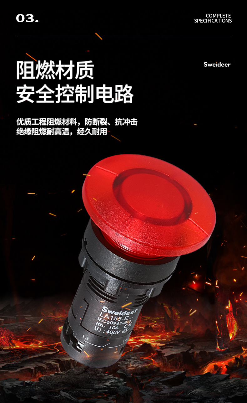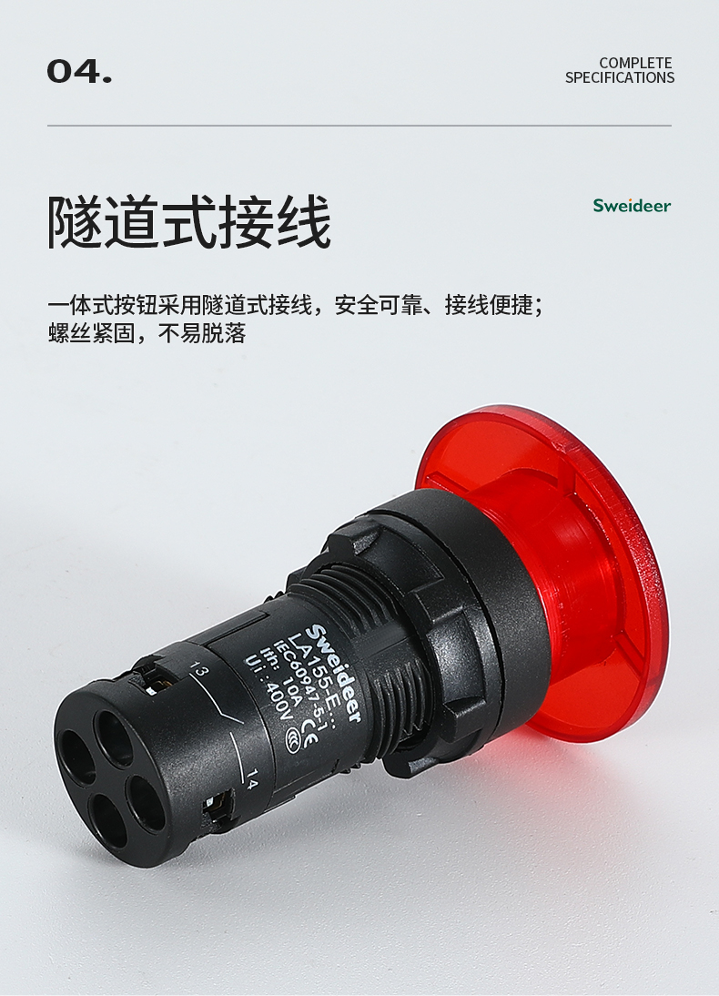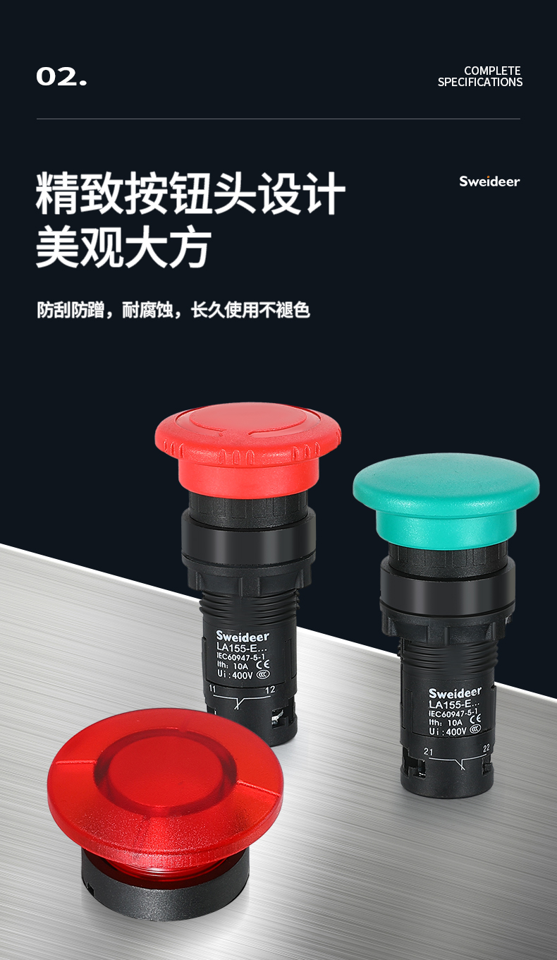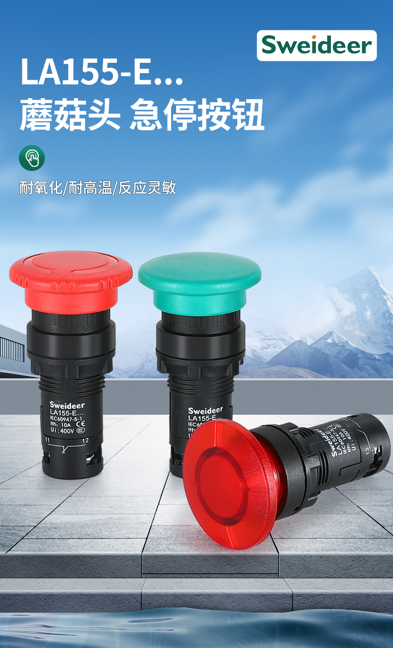 LA155-E3系列Sweideer一体式开孔22MM急停按钮开关带自锁蘑菇头自复位点动按钮