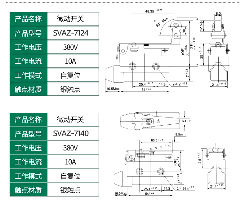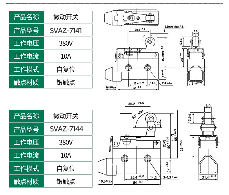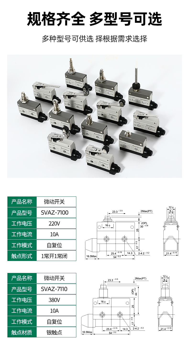 SVAZ系列行程限位微动开关小型触碰TZ7311AZ7312复位7121定位7141