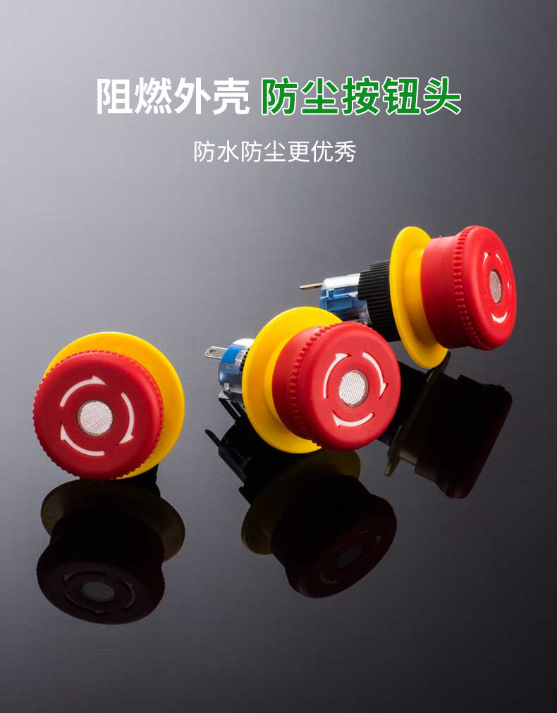 16MM急停按钮开关 带灯蘑菇头24V紧急停止电梯 LA16-M11Z急停开关