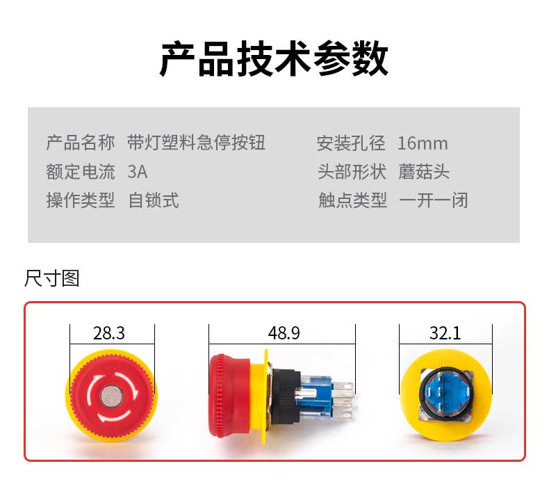 LA155-E3系列Sweideer一体式开孔22MM急停按钮开关带自锁蘑菇头自复位点动按钮