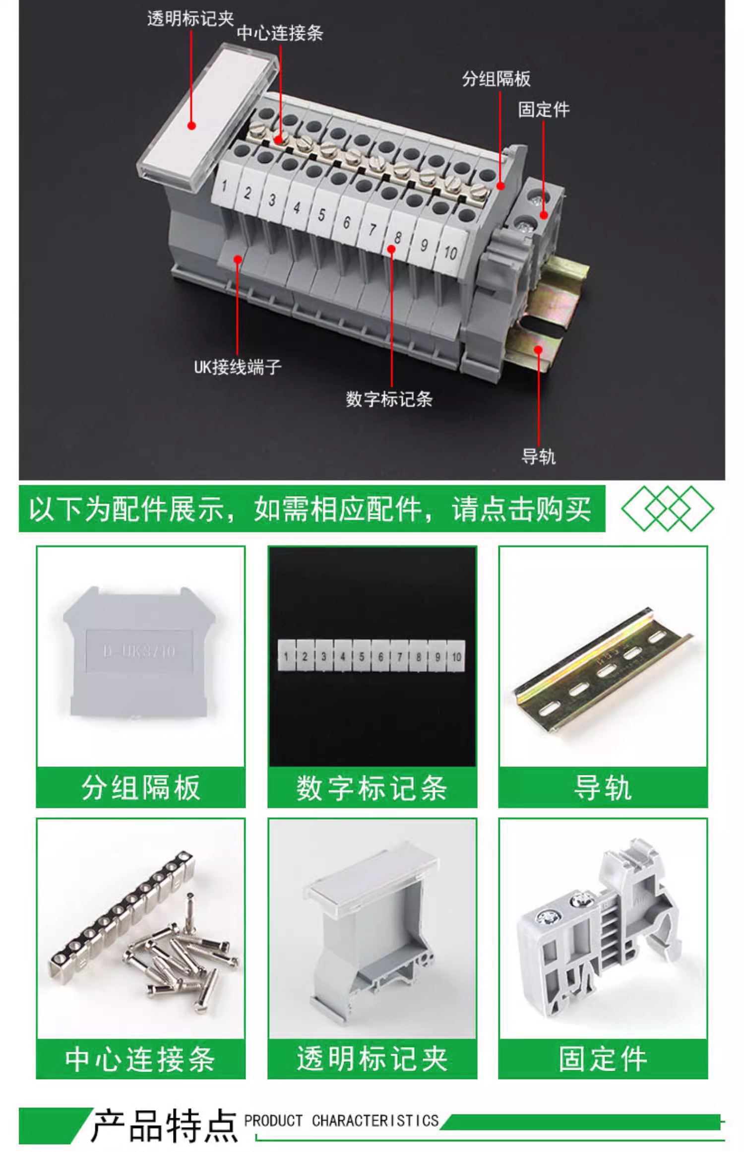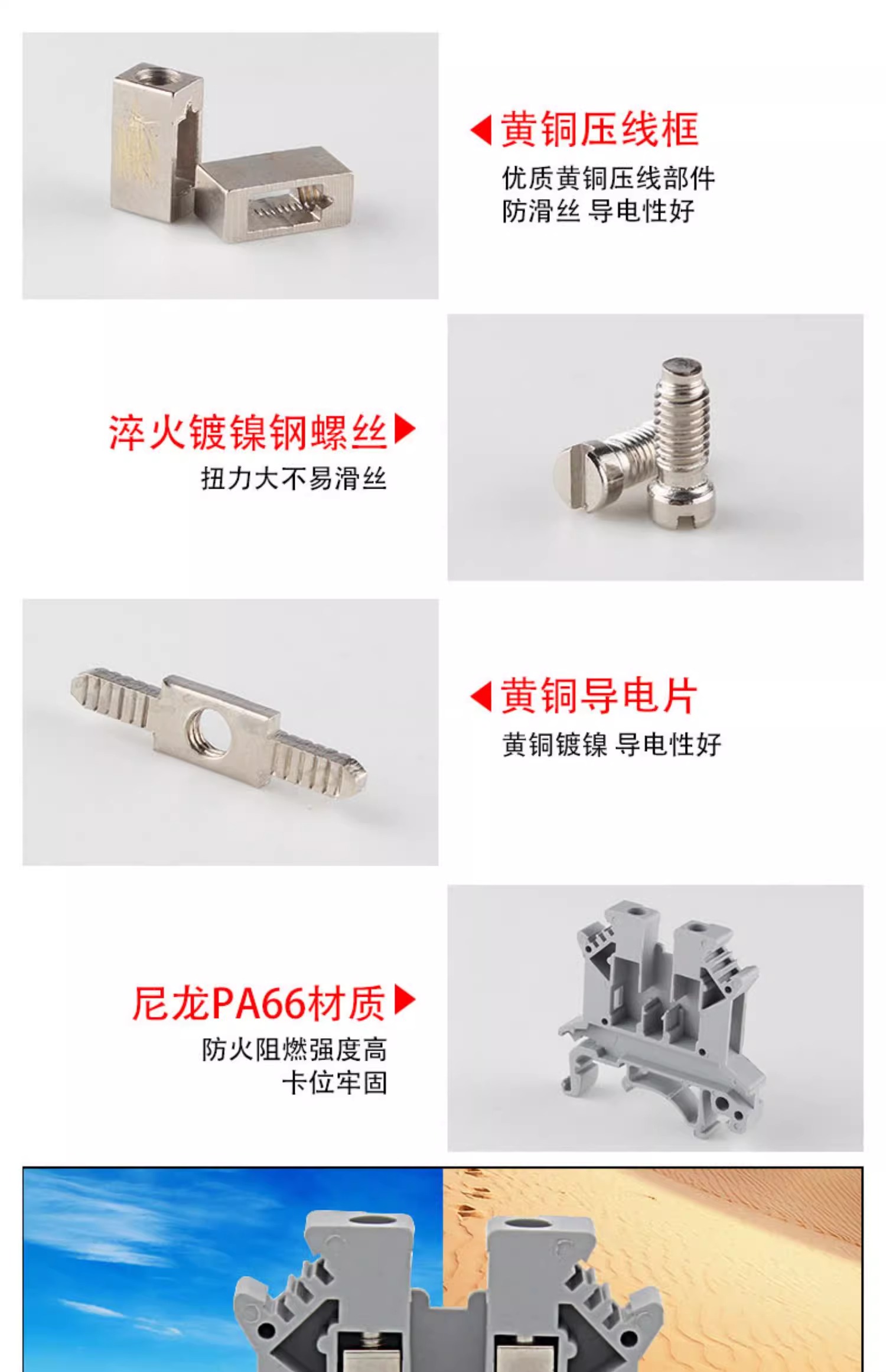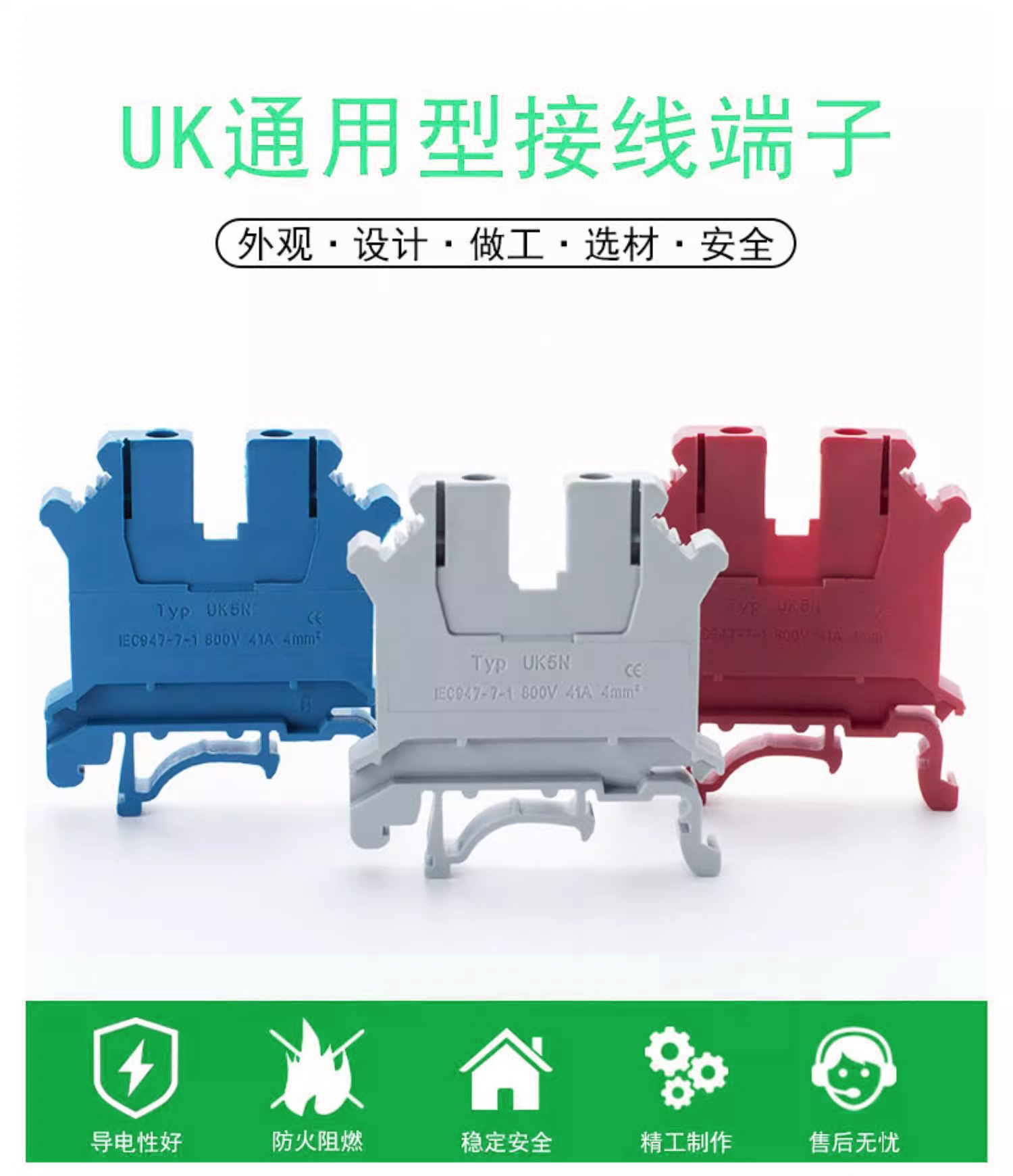 UK2.5B导轨式接线端子 2.5mm平方 纯铜材质阻燃电压端子排UK-2.5N