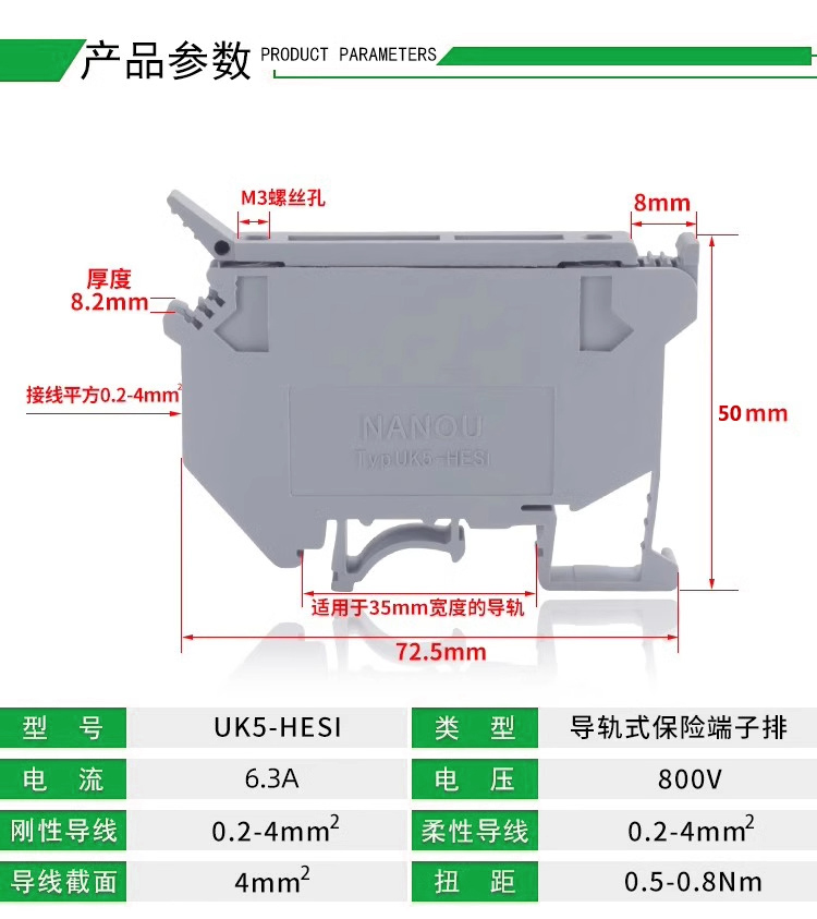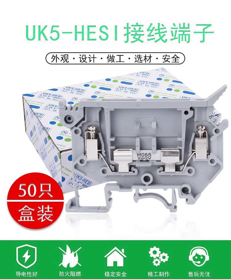 UK纯铜熔断器端子 UK5-HESI接线端子底座保险丝接线端子排 导轨式