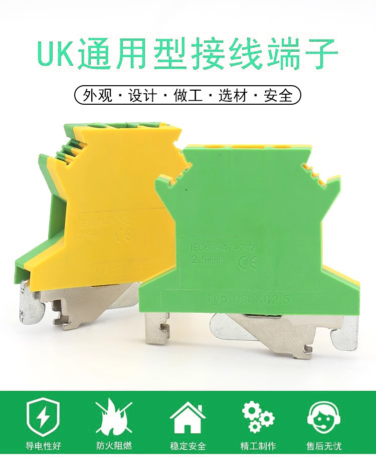 UK接线端子黄绿双色USLKG-2.5 接地端子UK2.5B平方电压端子导轨式