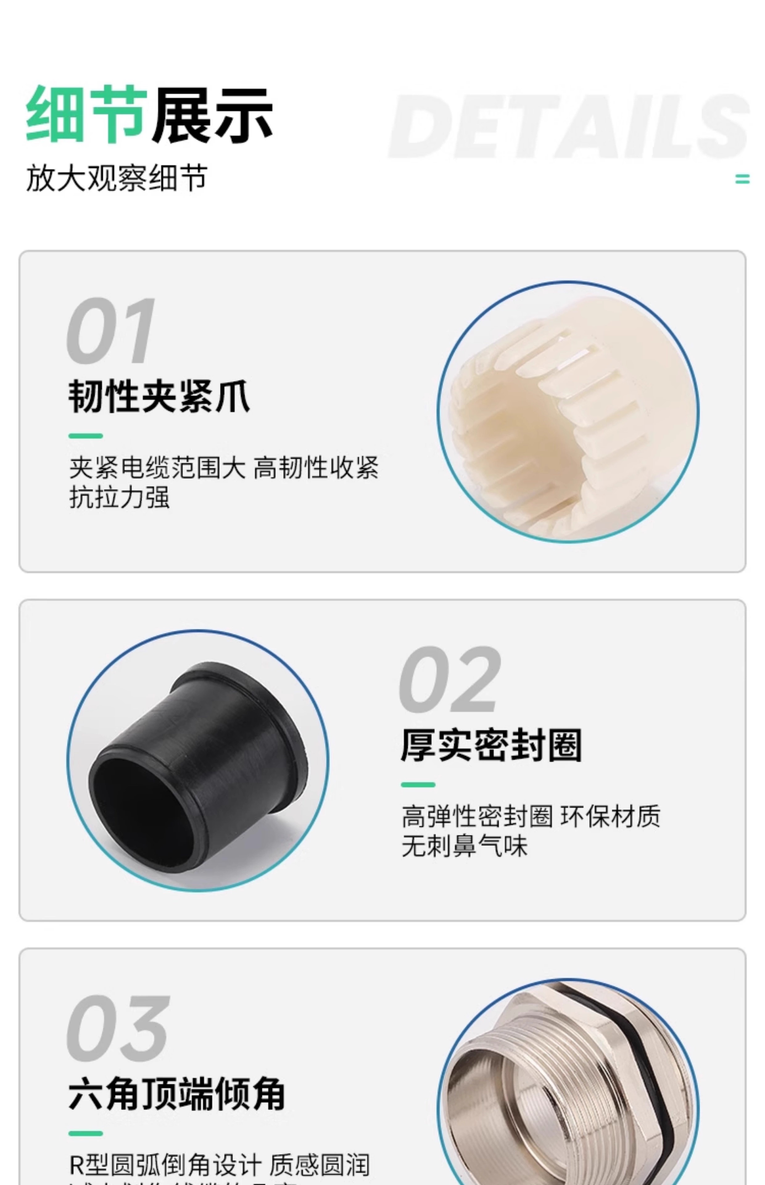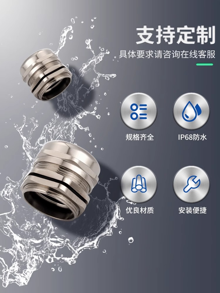 防爆金属电缆防水接头铜镀镍葛兰锁紧密封格兰连接器M10M12