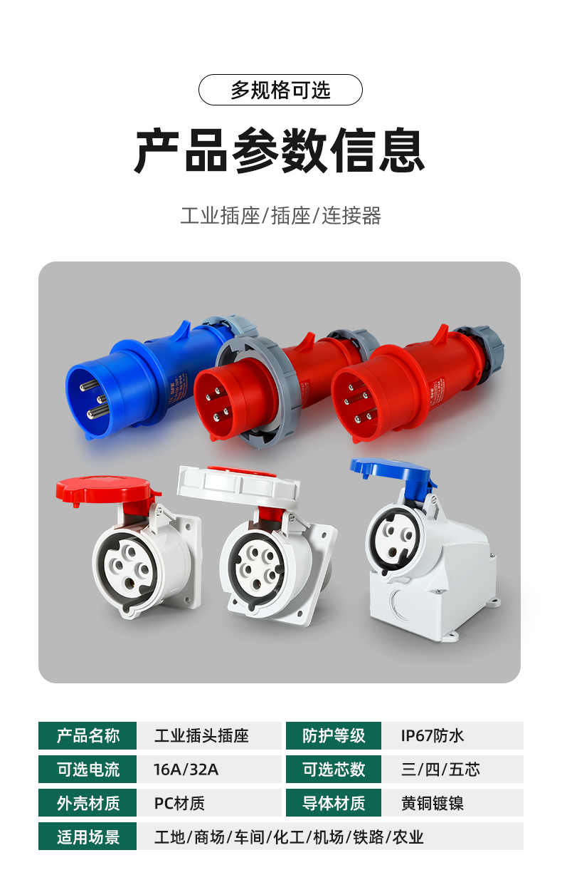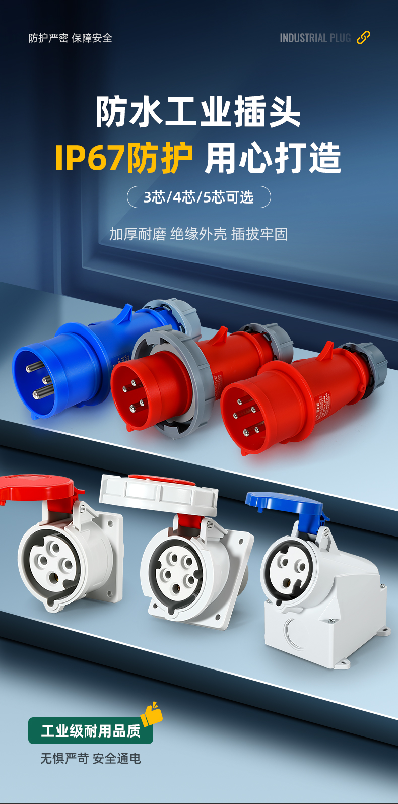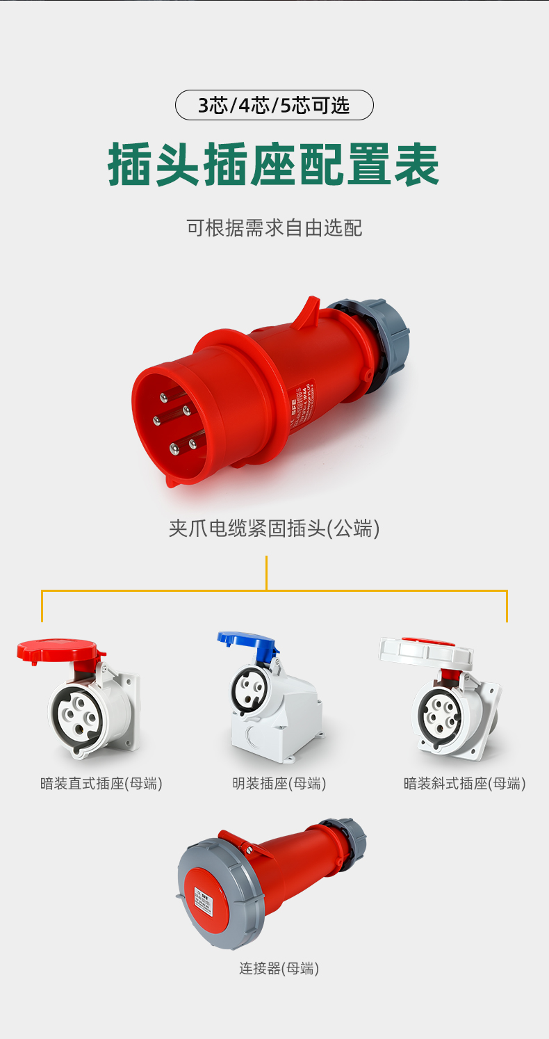 工业航空插头插座3孔4芯5芯 5芯 12/32A 63A 125A连接器明装暗装三相电防水尘IP44 IP67