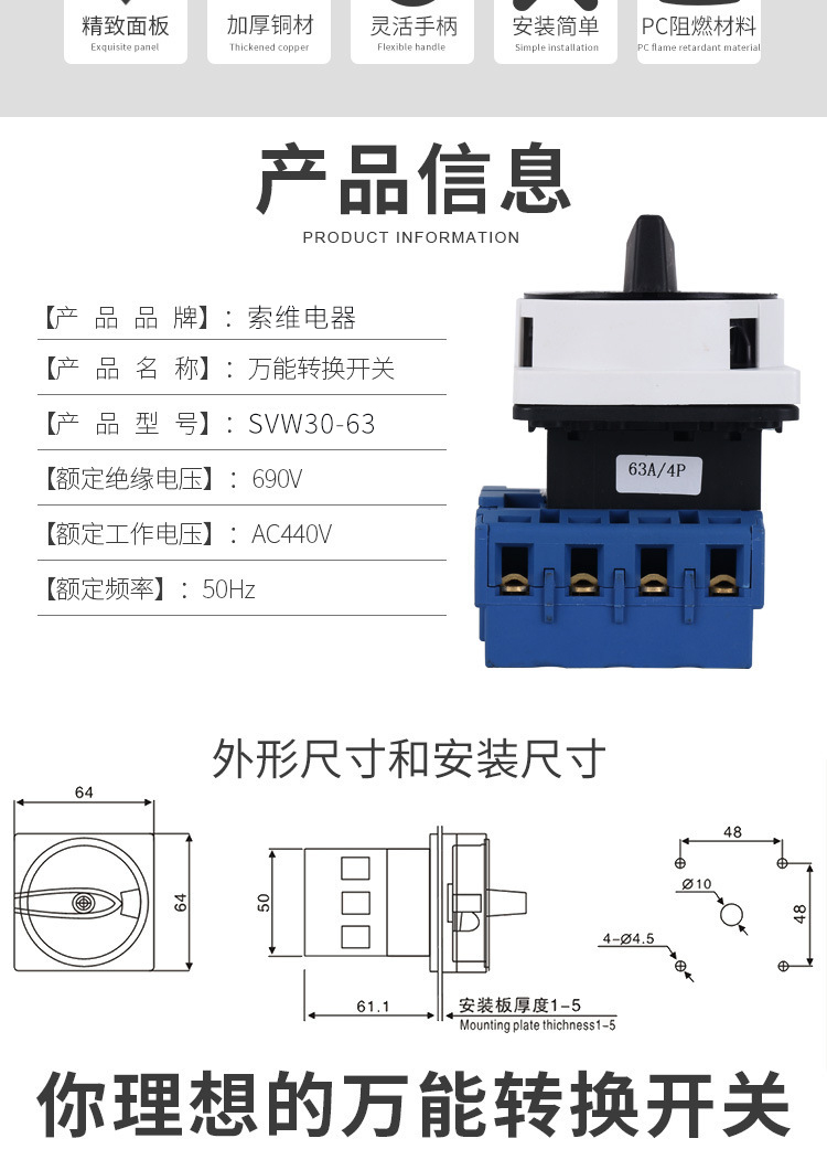 索维 SYW30-63A/4万能转换负载断路开关主控旋转档位通断组合开关