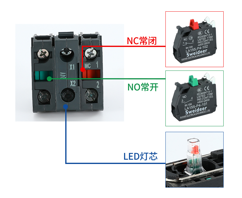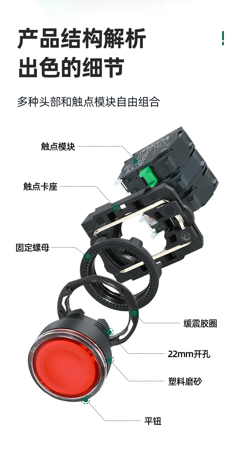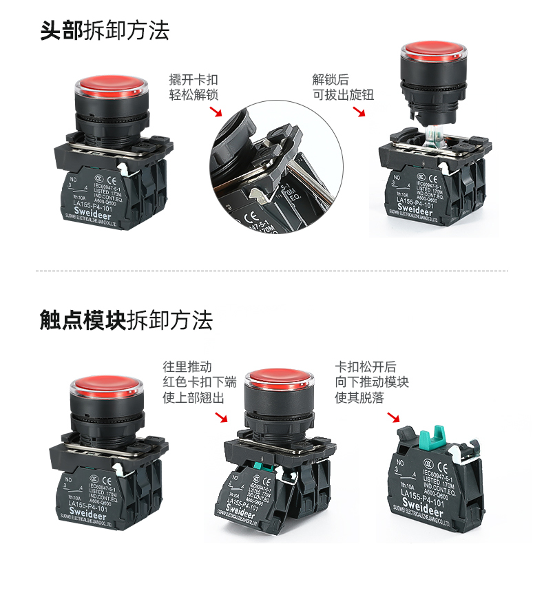 LA155-E3系列Sweideer一体式开孔22MM急停按钮开关带自锁蘑菇头自复位点动按钮