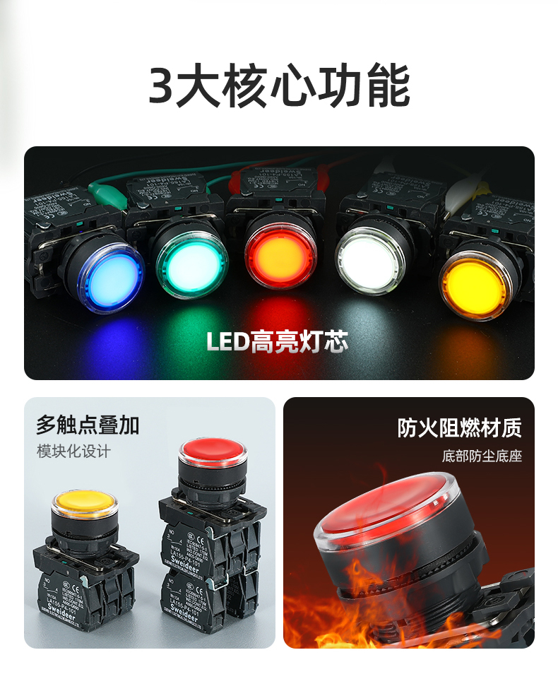 索维 XB5/P4平头塑料按钮开关自复位带灯点动按钮开关电压24V220V