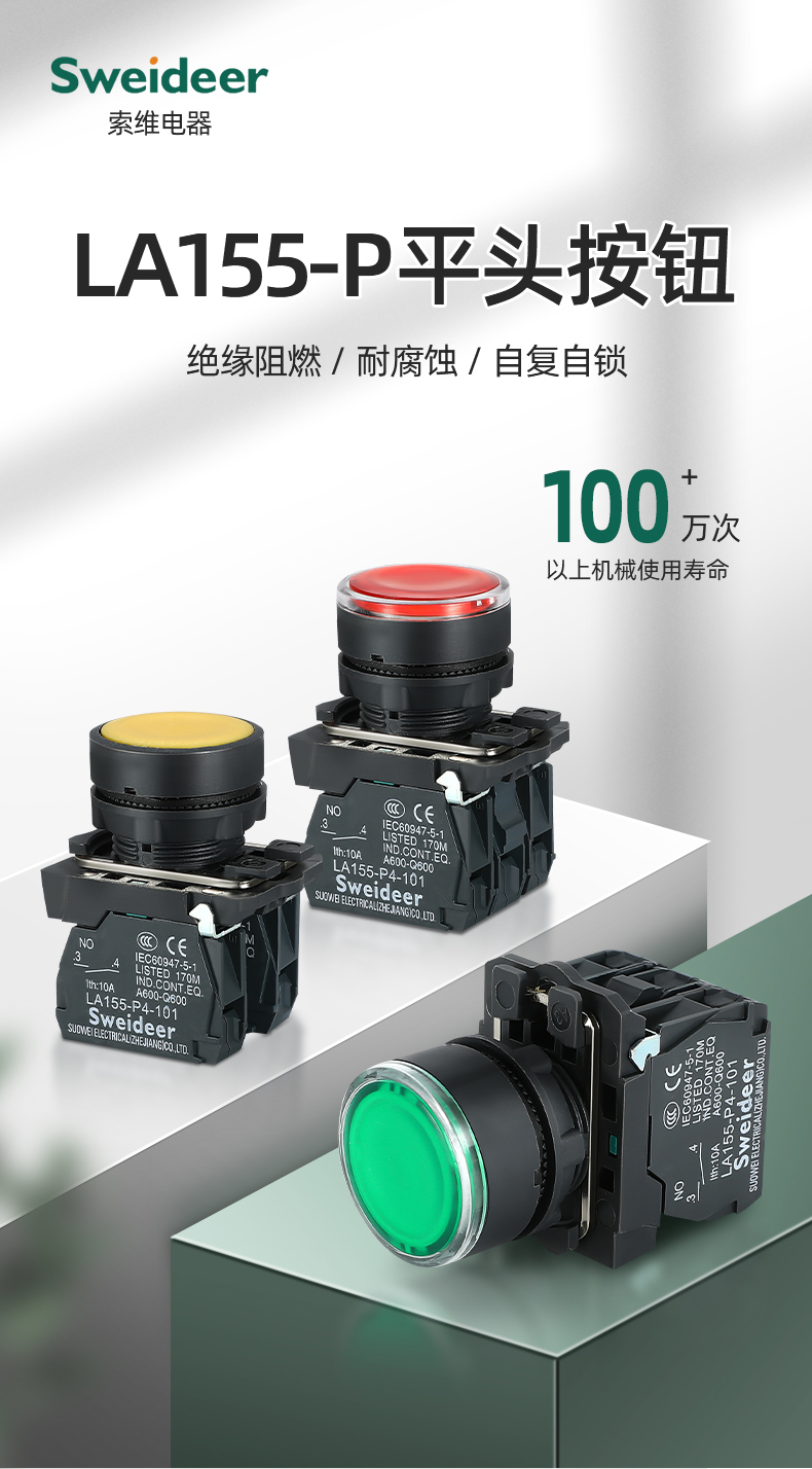 LA155-E3系列索维一体式平头按钮开关自复点动式急停按钮开关旋钮开关二档三档