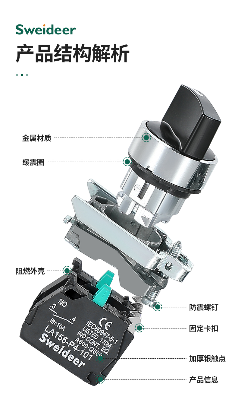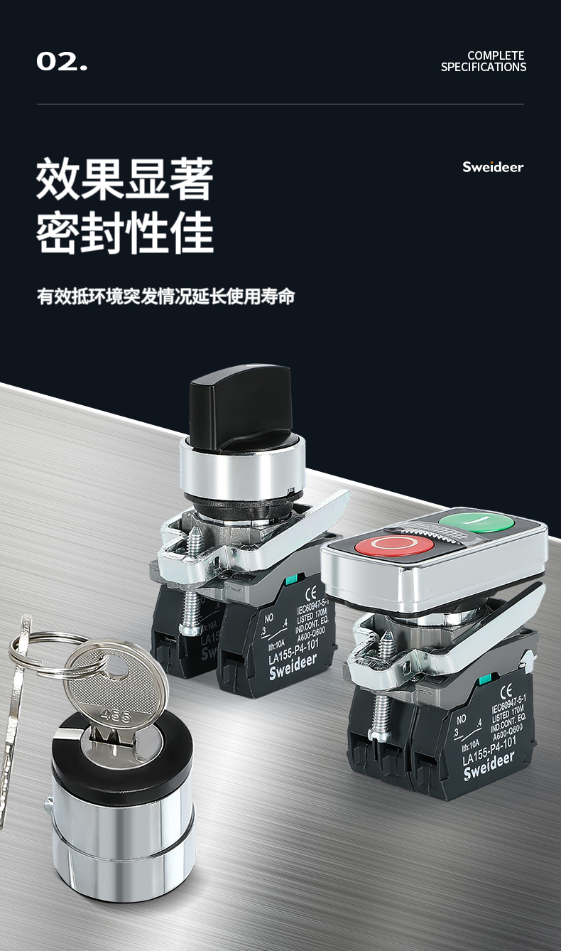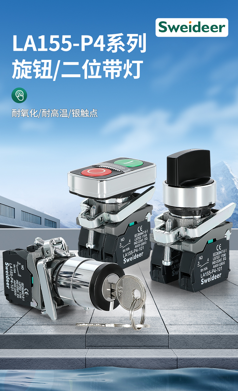 LA155-E3系列Sweideer 一体式旋钮开关 ED21钥匙开关二档三档电源转换开关22MM