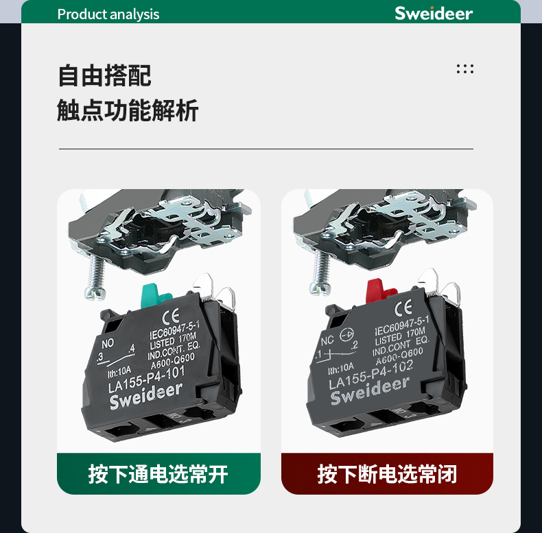 LA155-E3系列Sweideer一体式开孔22MM急停按钮开关带自锁蘑菇头自复位点动按钮