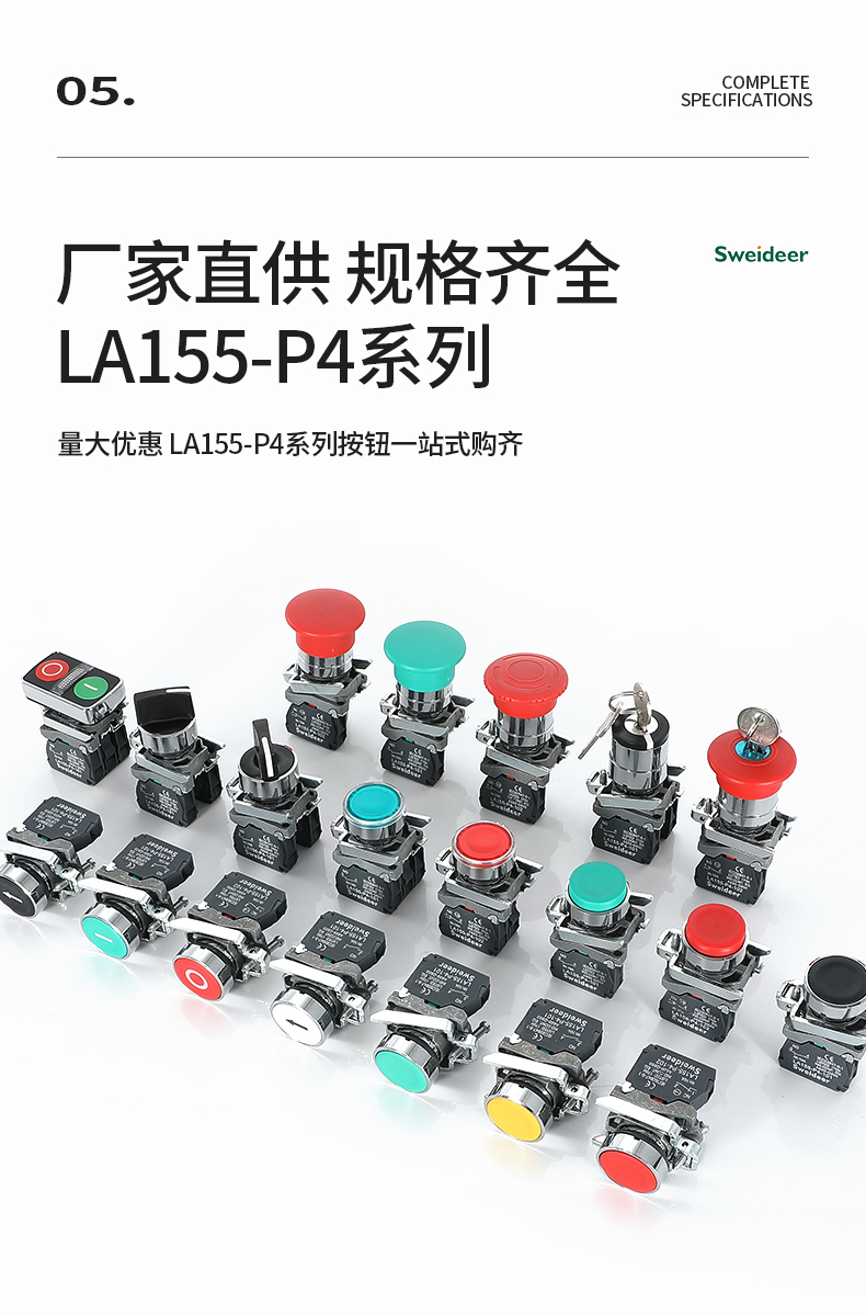 LA155-E3系列索维一体式平头按钮开关自复点动式急停按钮开关旋钮开关二档三档