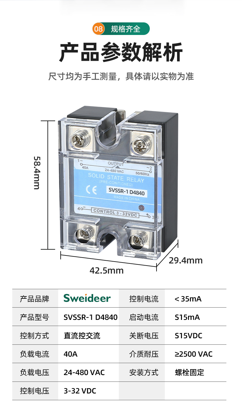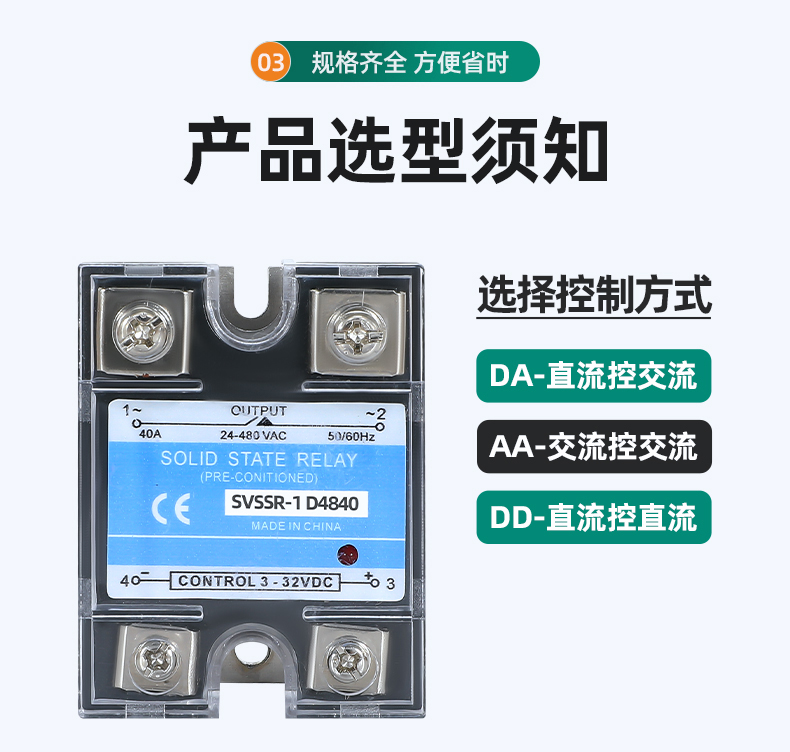 单相固态继电器直流控交流220v SVSSR-10DA25A40DA小型固态继电器
