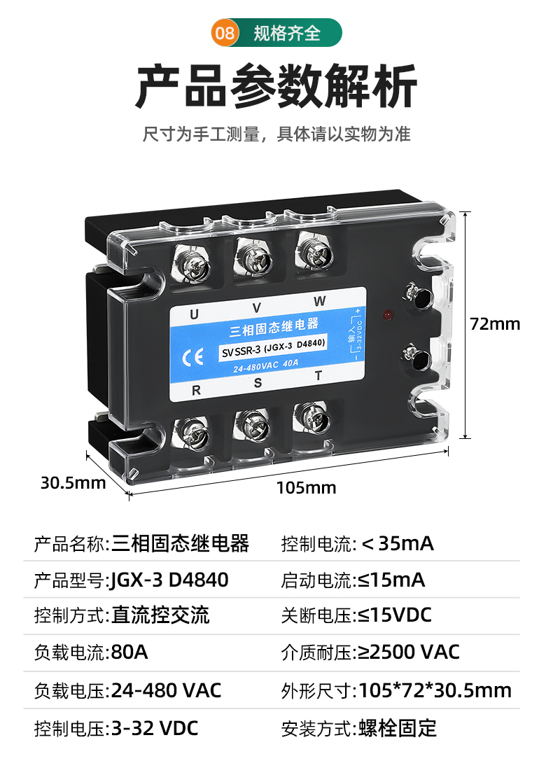 SSR-3三相380V固态继电器JGX-3直流控交流D4840 60DA100A200ACDG3