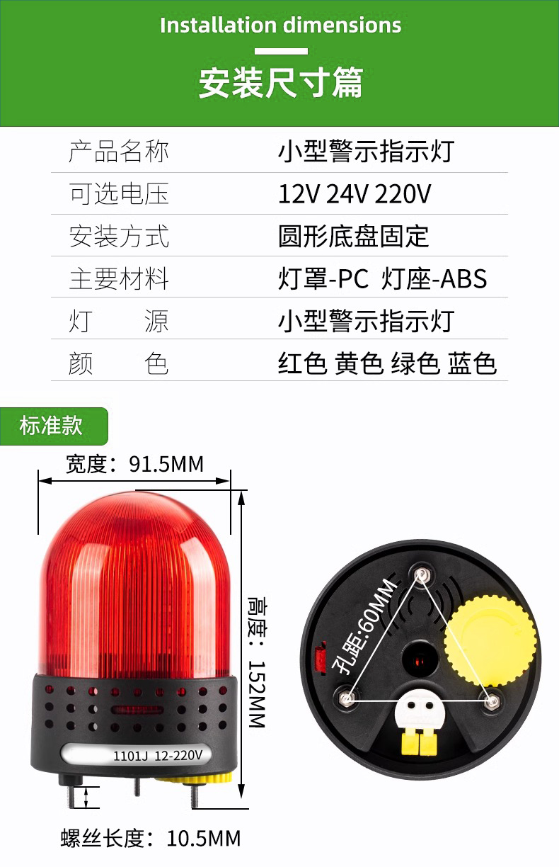 声光报警器LTE-1101J警示灯220V12V24V爆闪旋转式警报灯闪烁灯LED