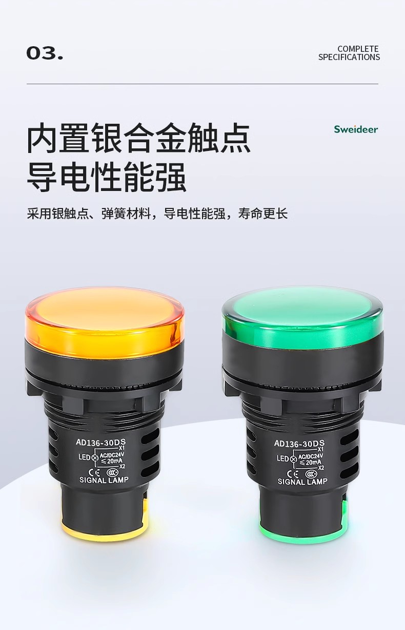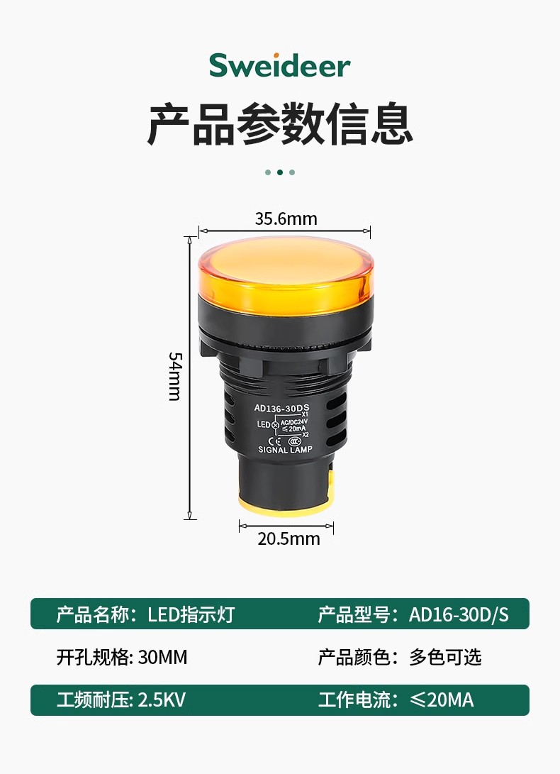 索维AD136-30D电源指示灯30MM开孔LED信号灯12V/24V