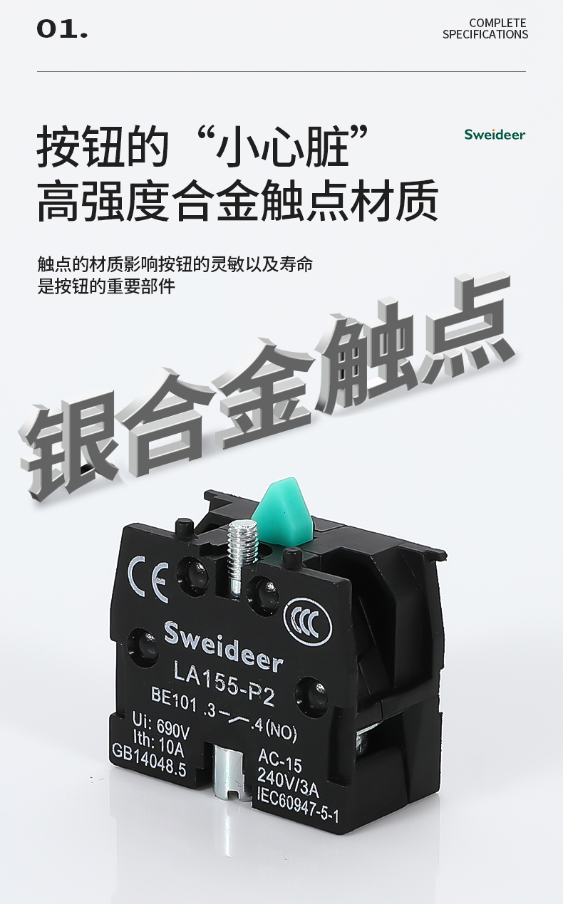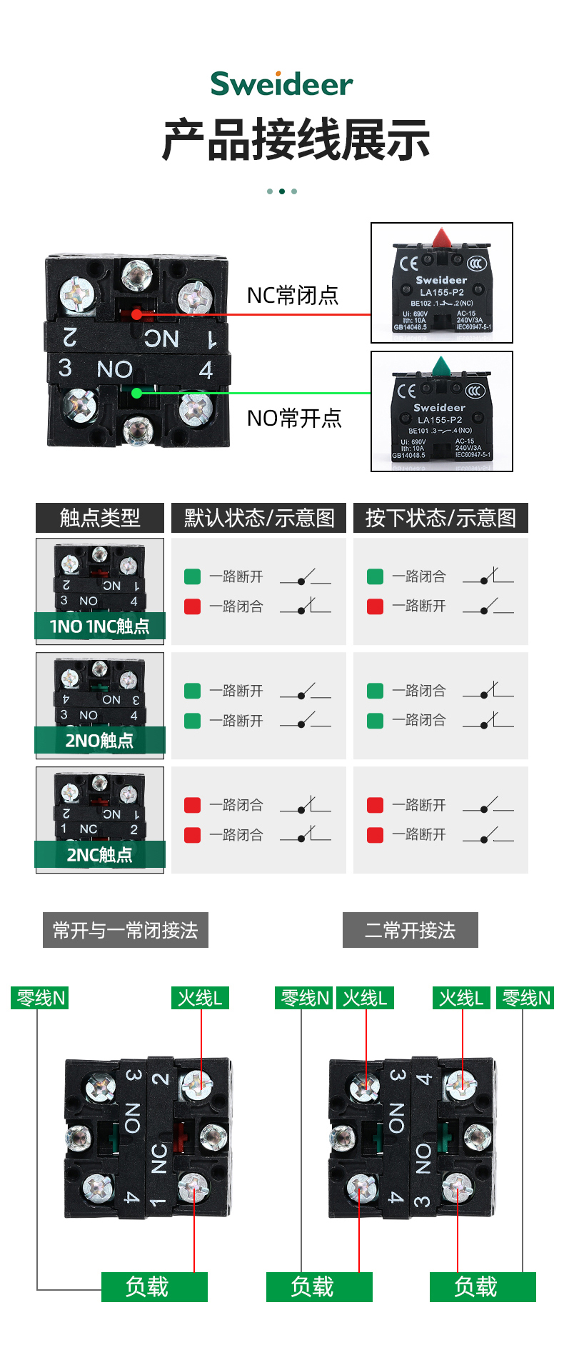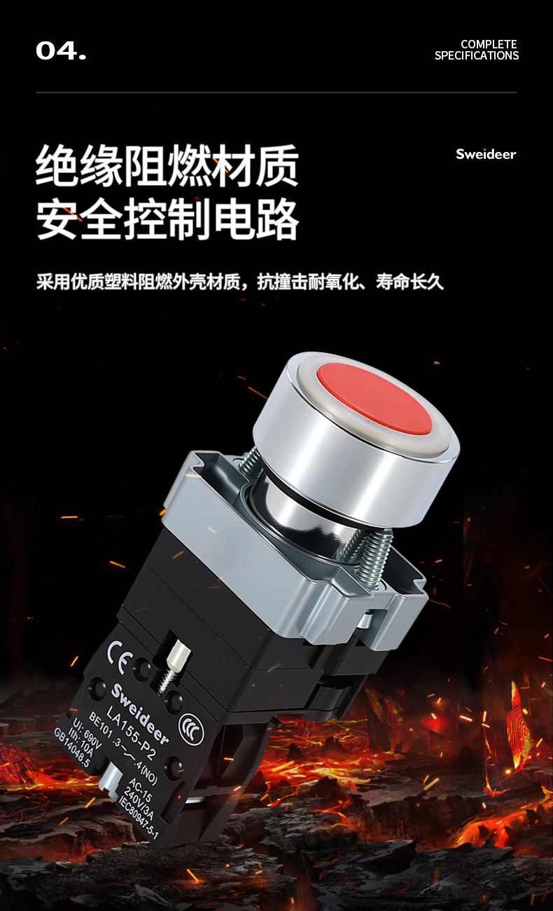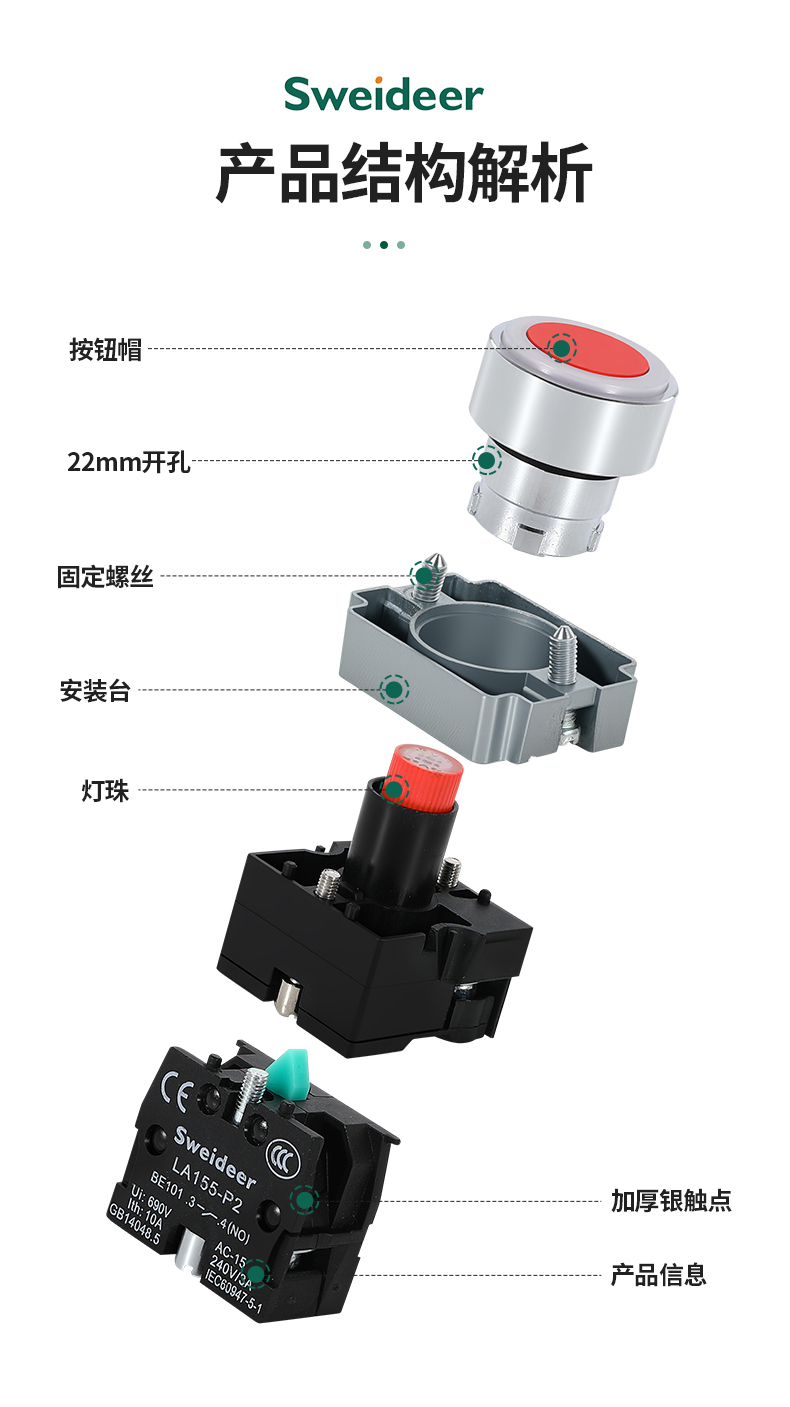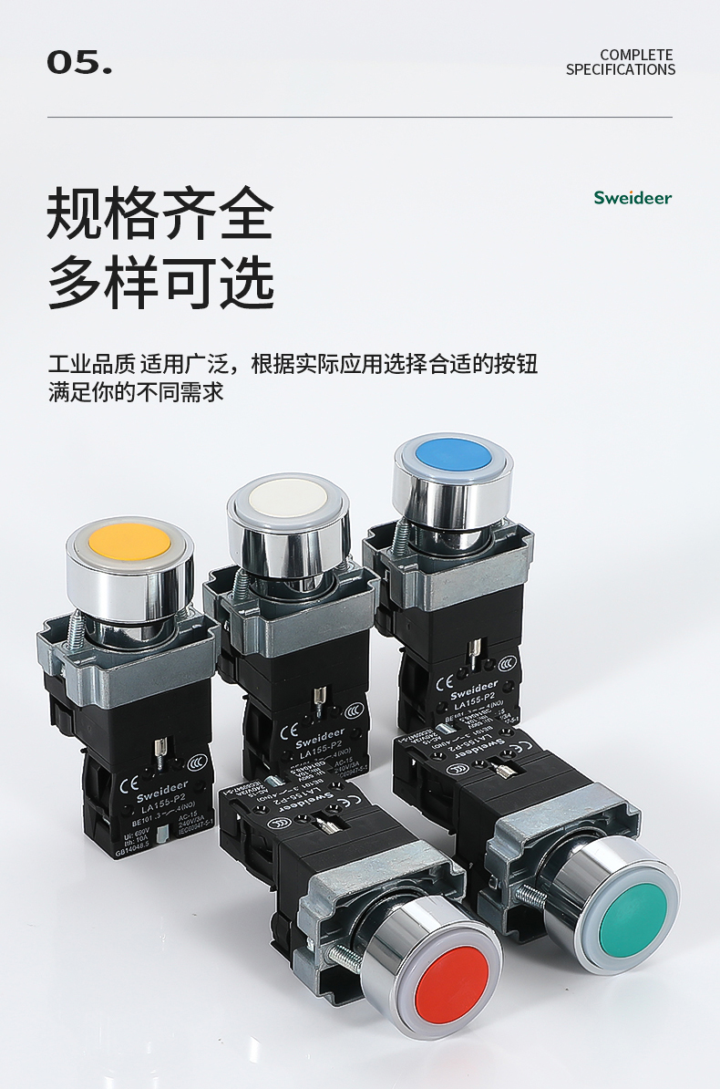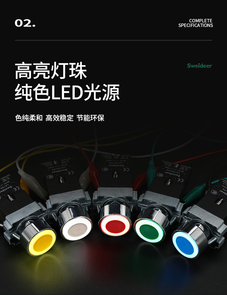 Sweideer 带灯防水按钮开关 22mm平头带指示灯红绿黄蓝12V24V220V