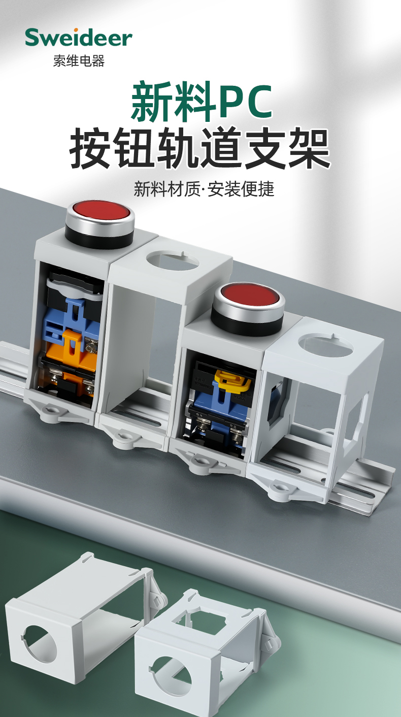 LA38按钮导轨支架安装固定座22mm按钮开关指示灯按钮保护罩急停座