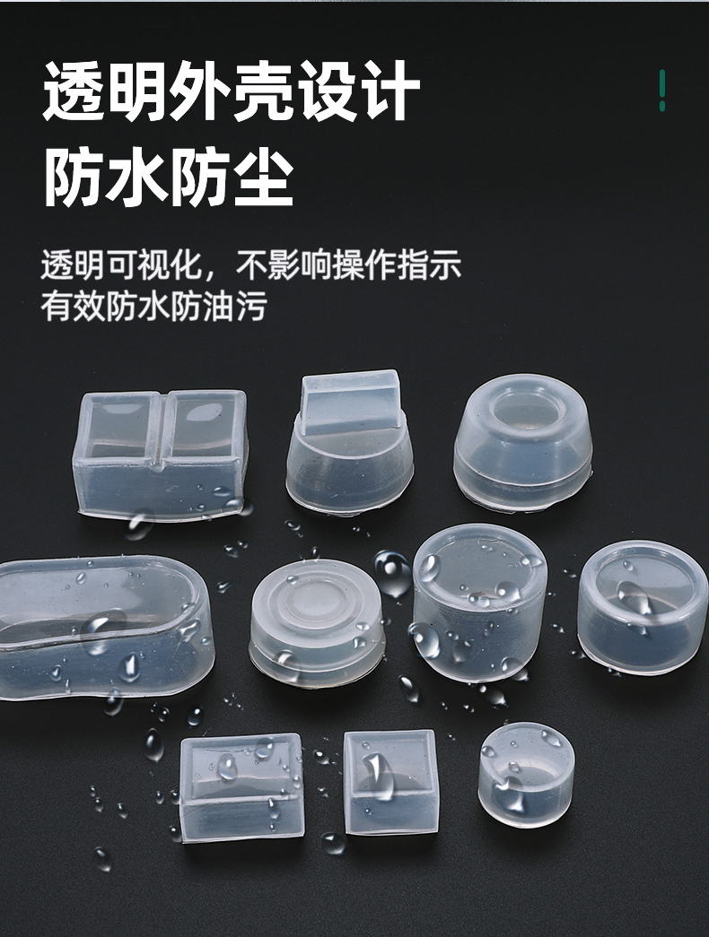 按钮防水帽橡皮防尘套22mm开关保护罩16圆形双位钮透明密封硅胶套