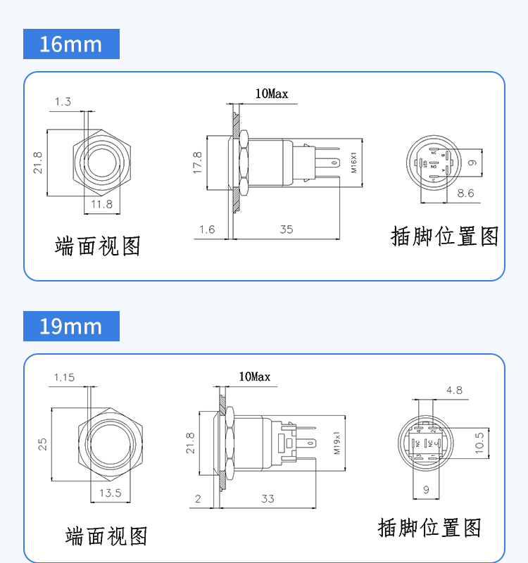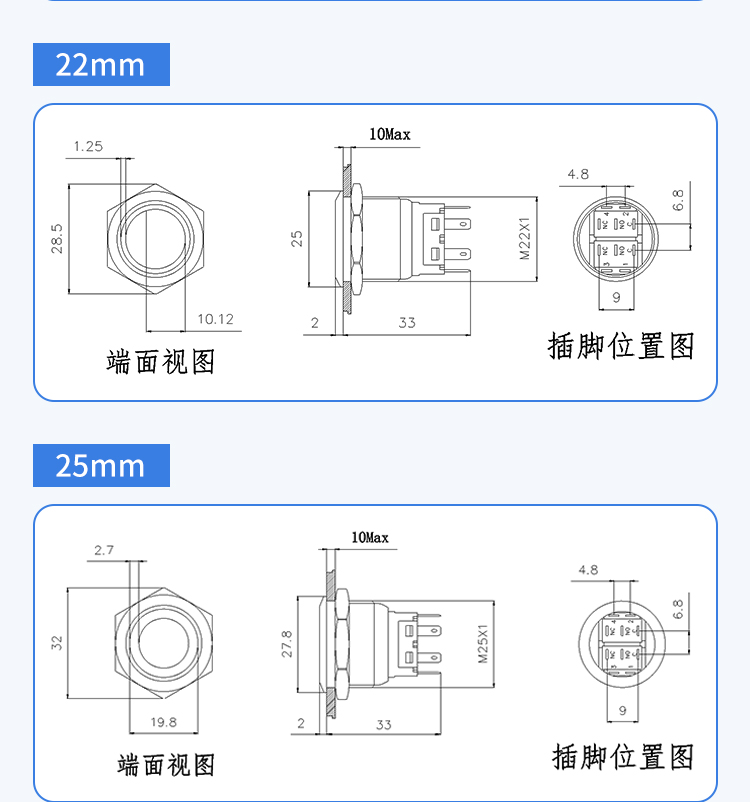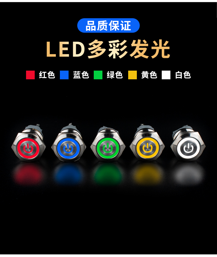 索维161922MM金属按钮开关 带灯双色三色灯复位自锁 门铃电源按键