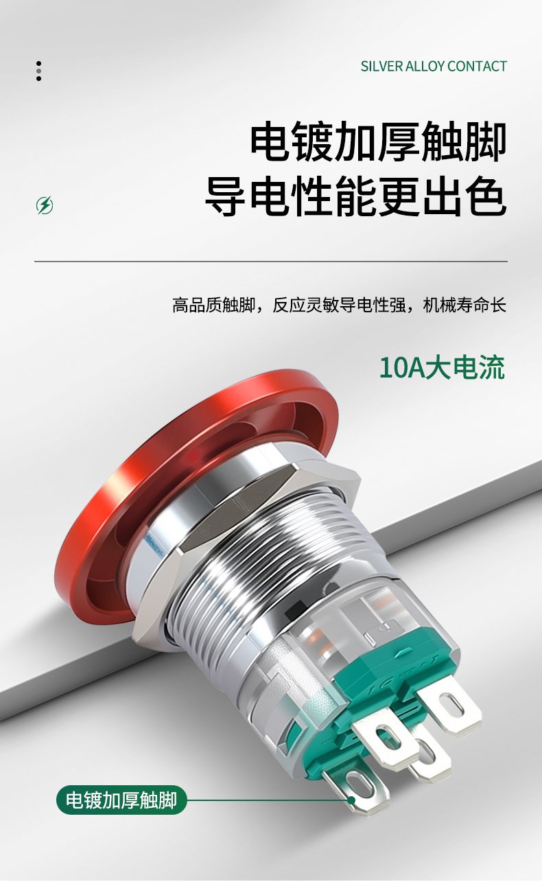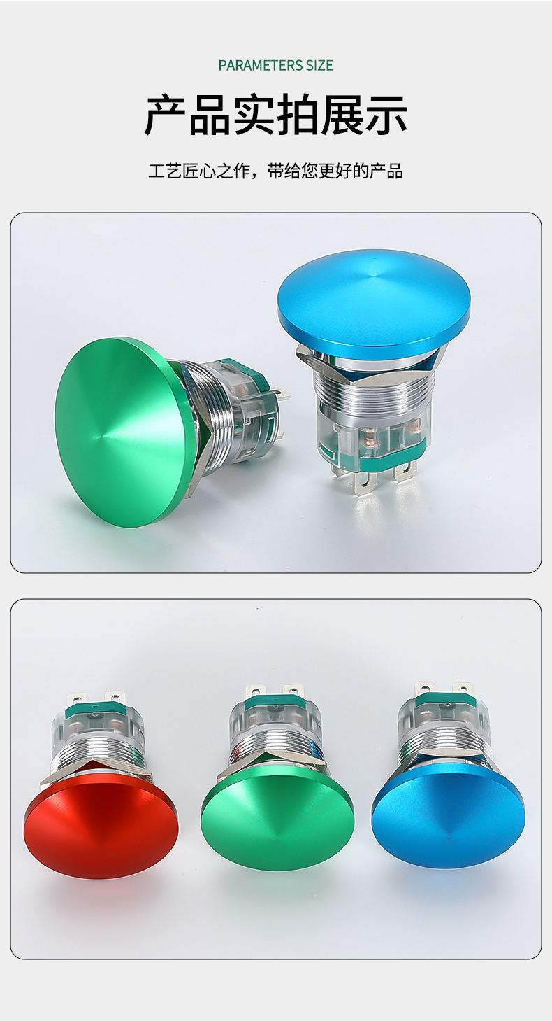 16/19/22mm 金属按钮开关蘑菇头10A大电流自复位自锁防水启动按键