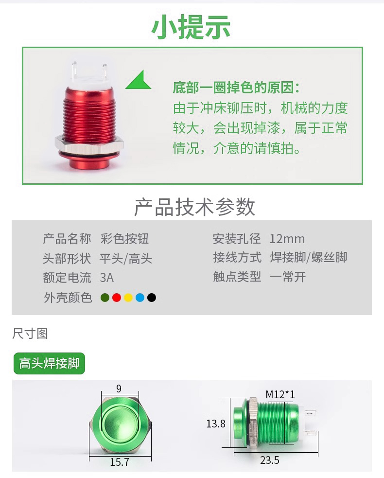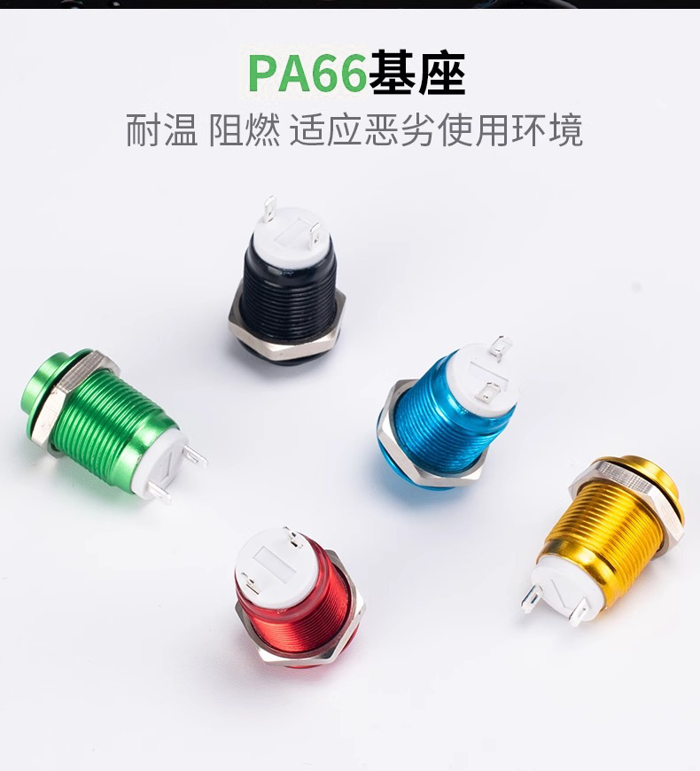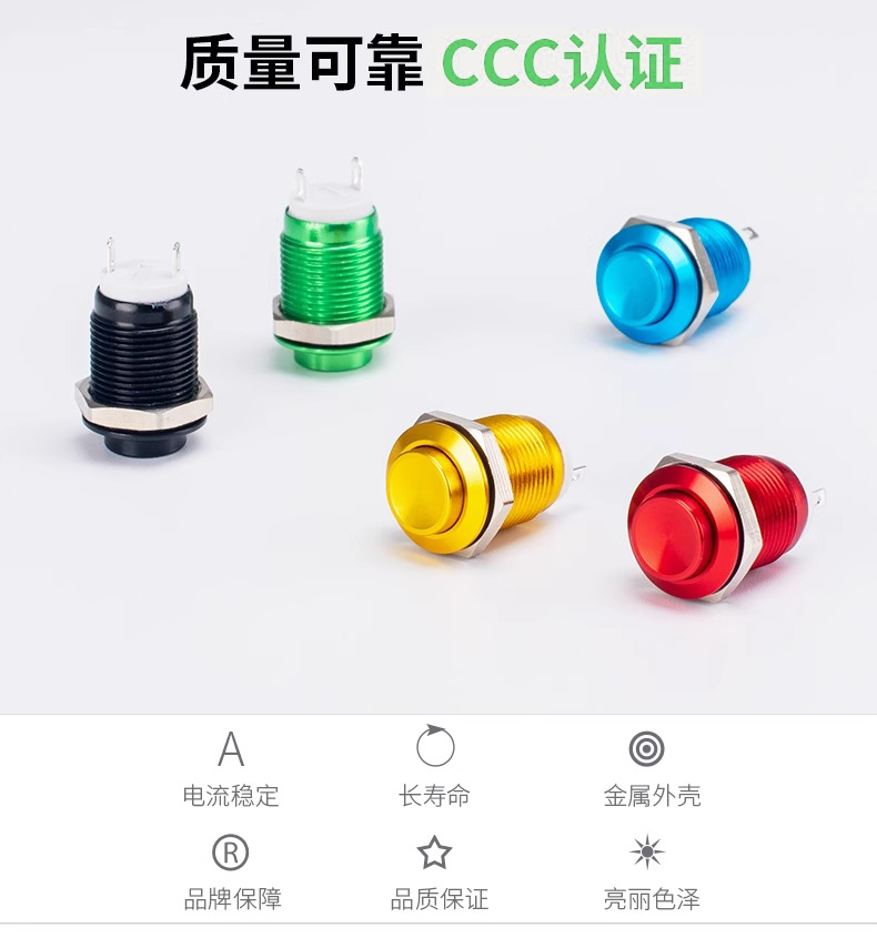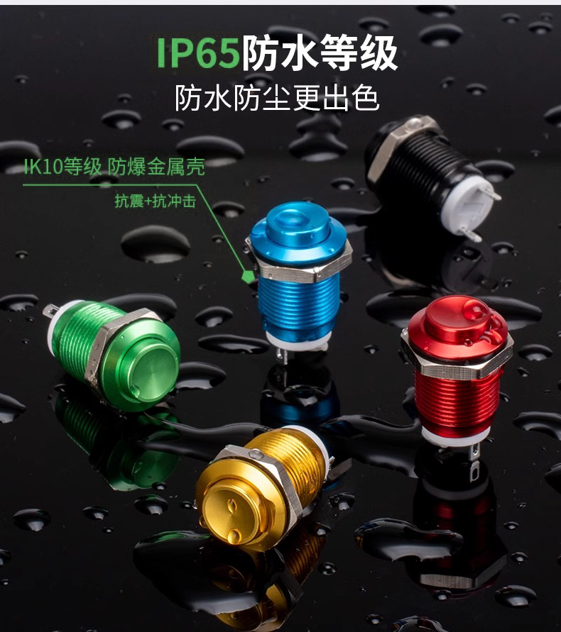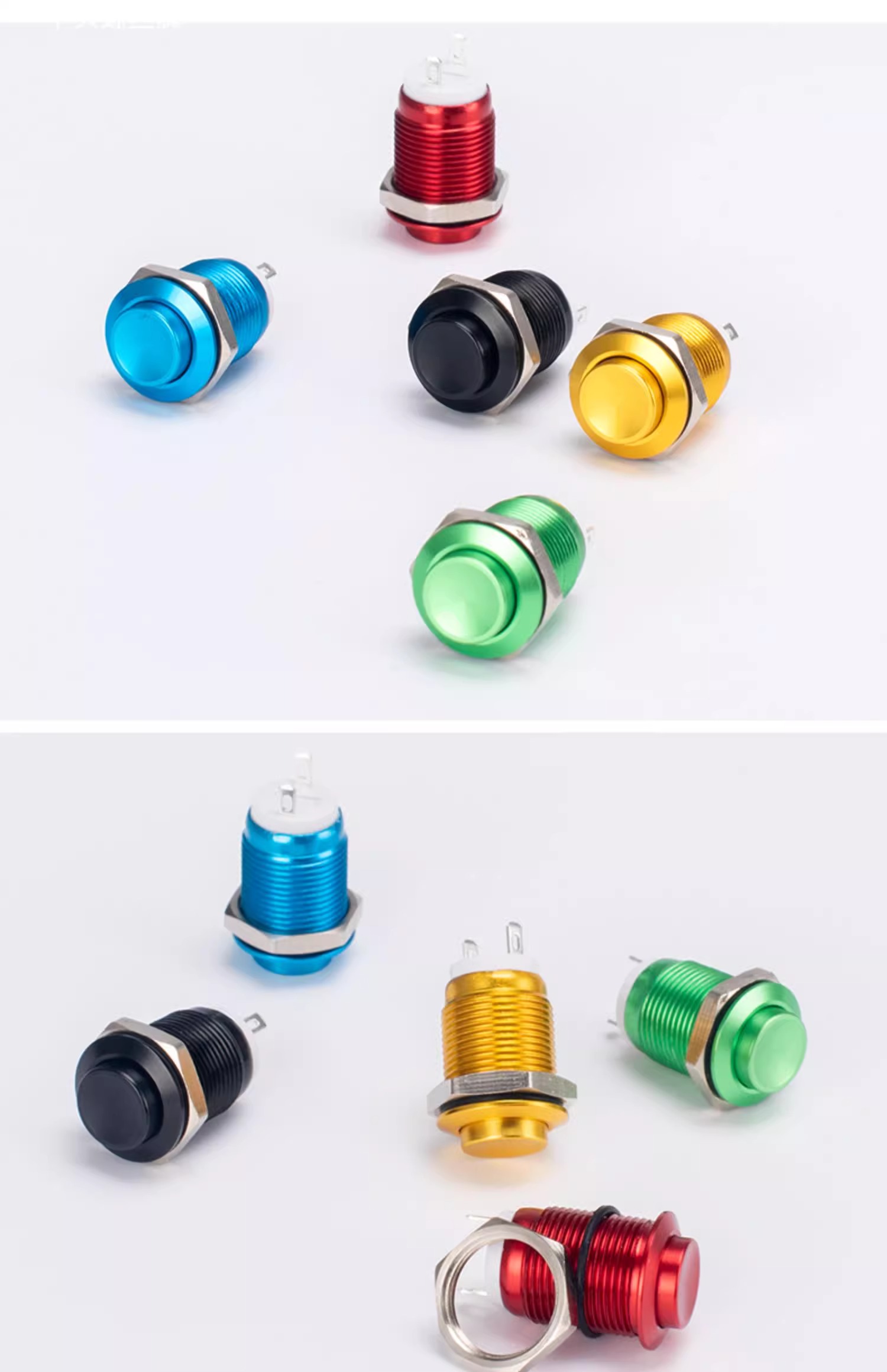 12MM金属按钮开关自复点动焊接彩色铝氧化黑红黄绿蓝小型高头迷你