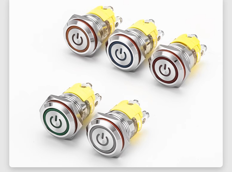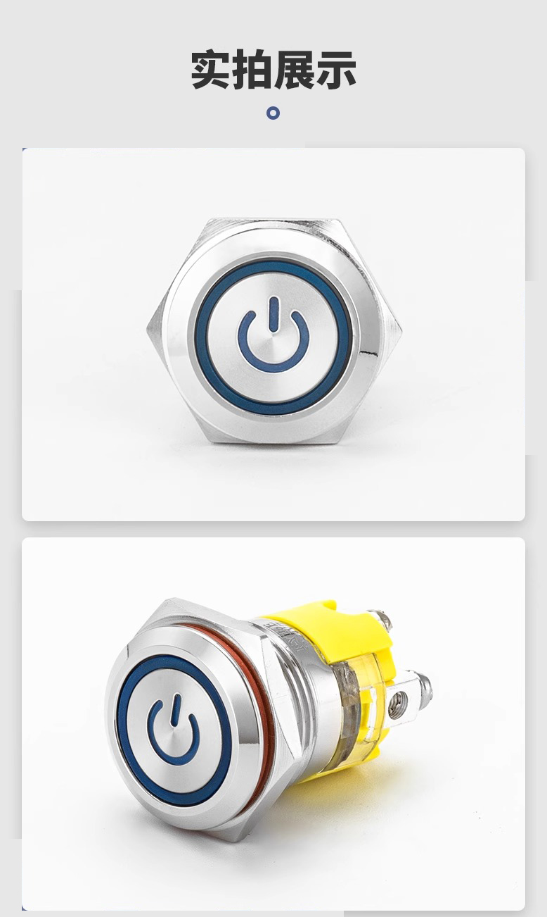 索维 金属按钮开关16/19MM自锁位 自复汽车大电流螺丝脚防水功放带灯