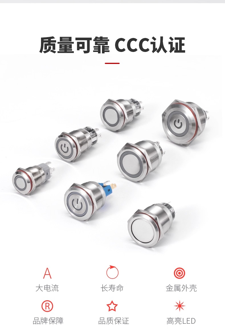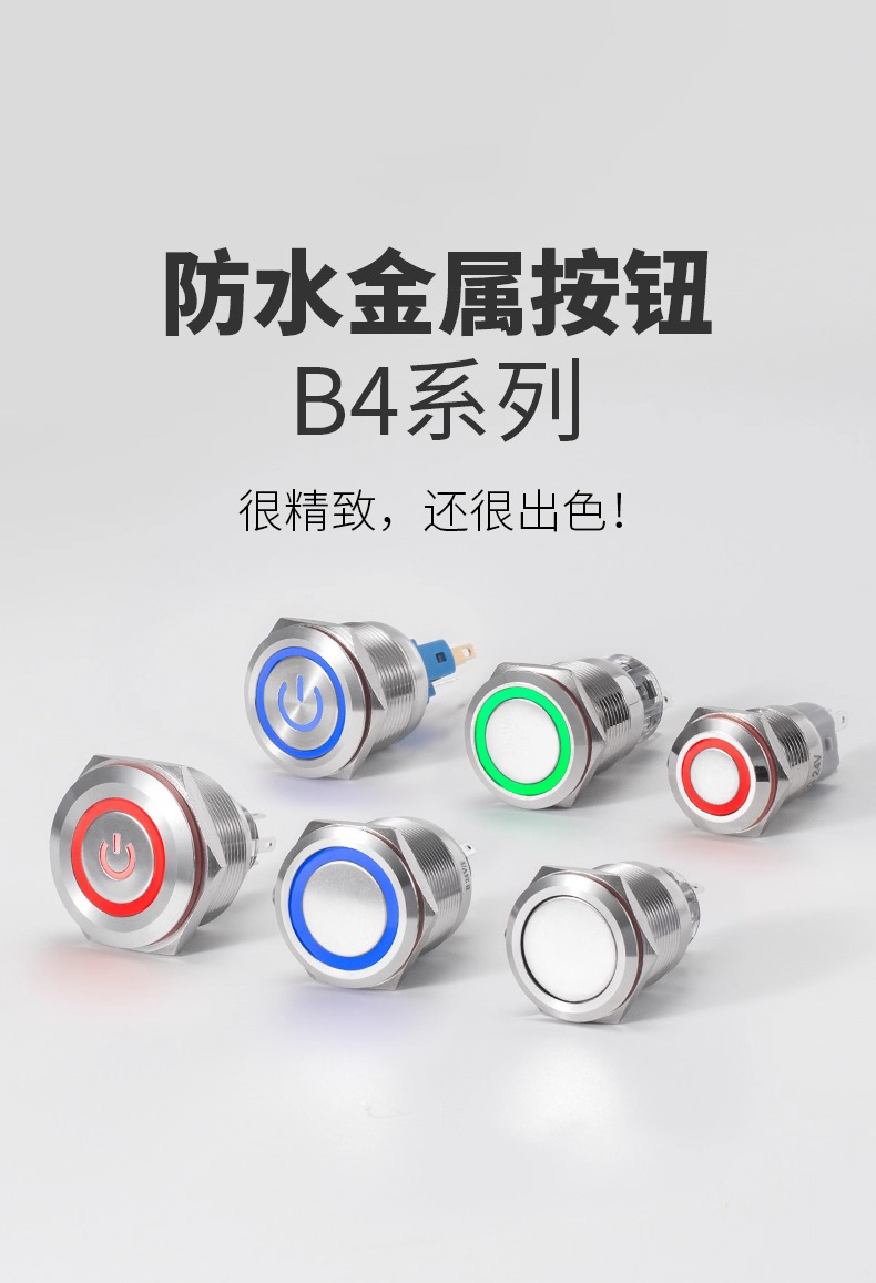 金属按钮开关钮子圆形按压式带灯自复位自锁电源A4微型防水按键B4