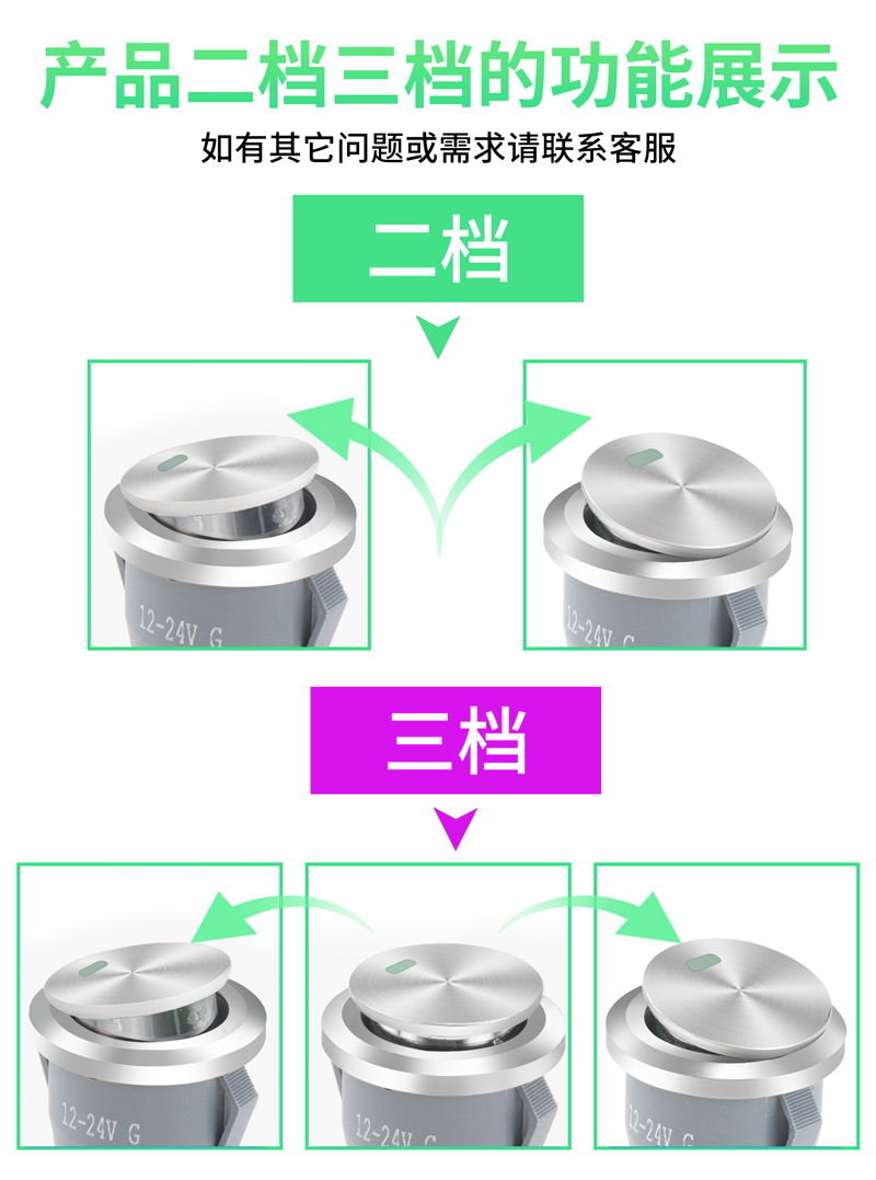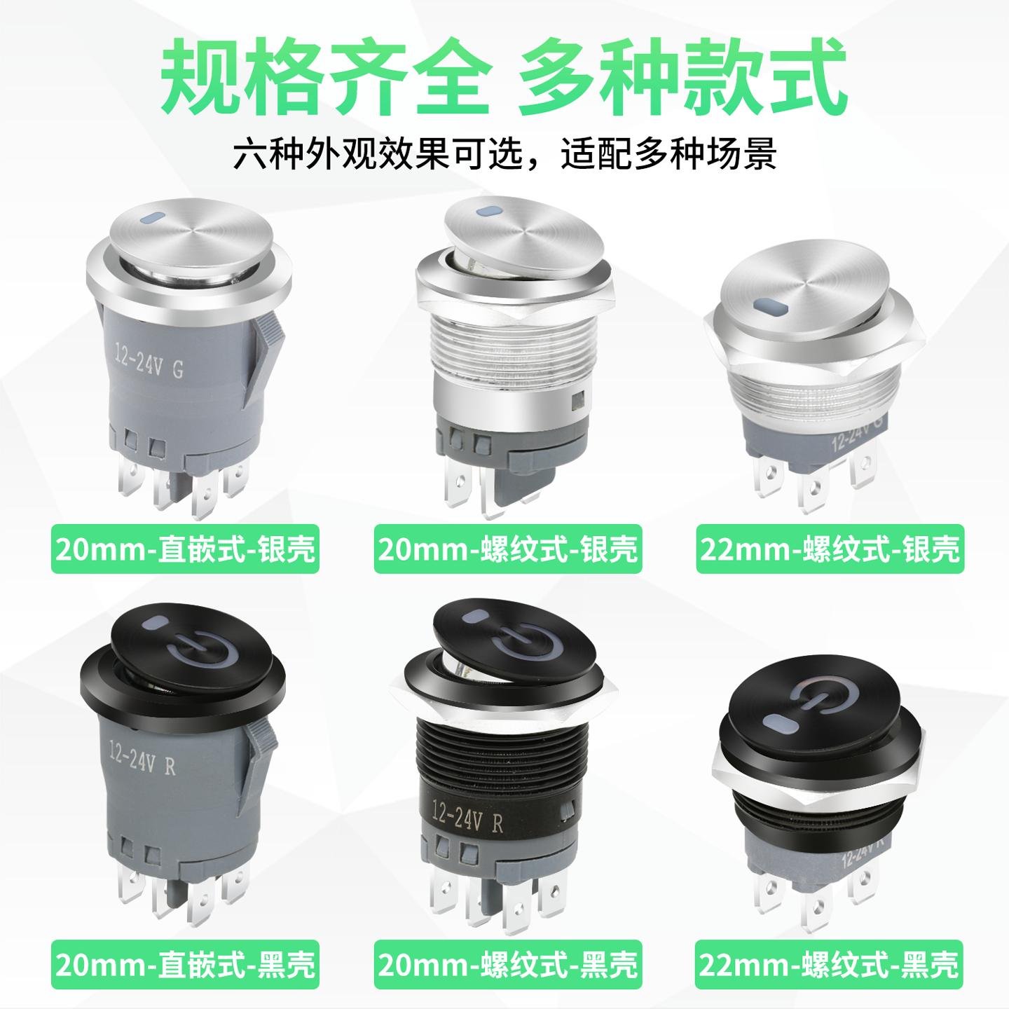 20/22mm 圆形金属船型开关二档三档大电流翘板开关电源按钮Ith20A